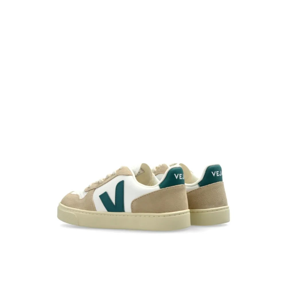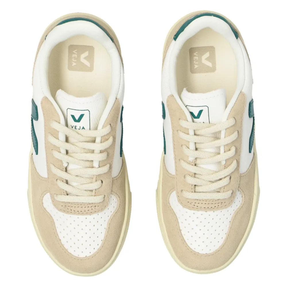Die Veja Small V-10 Laces Chromefree Leather Sneakers kombinieren eine klassische Low-Top-Silhouette mit perforierten Einsätzen für Atmungsaktivität und das charakteristische V-Logo für sofortige Erkennung. citeturn1view0turn0search1 Hauptmerkmale: Weiß | Brittany Almond | Veloursleder und Leder | Perforierte Einsätze für Atmungsaktivität | Schnürverschluss | Low-Top-Silhouette | Perforierte Details | Grünes V-Logo und VEJA-Schriftzug an Ferse und Zunge | Beige Sohle, die zu den Obermaterialtönen passt | Abmessungen & Passform: Sohlenhöhe: 2 cm | Zusammensetzung & Pflege: Leder | Veloursleder | EVA (Innensohle) | Baumwolle (Schnürsenkel/Innensohle) | Gummi (Laufsohle) | Polyester (Futter) | Nicht in der Maschine waschen. Glattleder mit einem feuchten Tuch abwischen und bei Bedarf ein Schutzspray oder Balsam verwenden. An der Luft und entfernt von Wärmequellen trocknen lassen. Alle 3–6 Monate eine geeignete Imprägnierung auftragen. citeturn1view0turn0search1