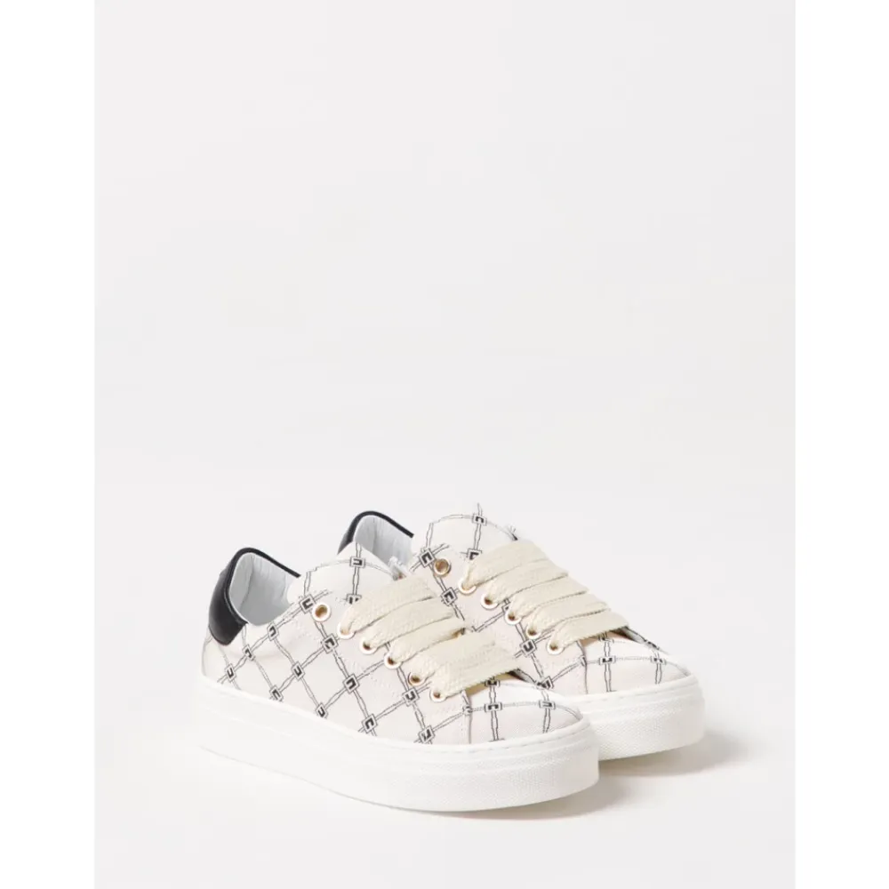 Die Sneakers von Elisabetta Franchi zeichnen sich durch ein Allover-Logo-Motiv und eine kontrastierende Logo-Ferse aus. Sie kombinieren ein charakteristisches Branding mit einer klassischen Schnürsilhouette für den Alltag. Hauptmerkmale: Beige | Leder | Schnürverschluss | Gummisohle | Allover-Logo | Runde Spitze | Kontrastierende Logo-Ferse | Low-Top-Silhouette | Zusammensetzung und Pflege: 100% Leder