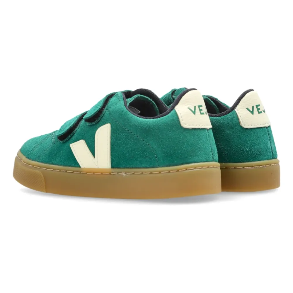 Die SMALL ESPLAR SUEDE SNEAKERS von Veja Kids sind die Quintessenz von Komfort und zeitloser Eleganz für die jüngsten Modebegeisterten. Sie kombinieren harmonisch die klassische Silhouette von flachen Sneakers mit außergewöhnlicher Haltbarkeit und bezaubern mit einem charmanten Grünton auf weichem Wildleder. Das mutige, kontrastreiche „V“-förmige Logo und das Markenemblem auf der Rückseite des Schuhs unterstreichen seinen durchdachten Stil. Die robuste karamellfarbene Gummisohle sorgt für hervorragenden Halt und Dämpfung, während der praktische doppelte Klettverschluss es Kindern leicht macht, die Schuhe selbst anzuziehen. Das Innere, gefüttert mit weichem, atmungsaktivem Stoff, bietet Komfort bei jedem Schritt. WARUM DIESES PRODUKT WÄHLEN? * Umweltfreundliche Materialien und ethische Herstellung * Praktische doppelte Klettverschlüsse – ideal zur Förderung der Unabhängigkeit * Einzigartiges, dezentes Design mit charakteristischen Veja-Details * Außergewöhnliche Haltbarkeit und Stabilität dank der robusten Gummisohle * Weiches, atmungsaktives Futter für ganztägigen Komfort. Sohlenhöhe: 2cm