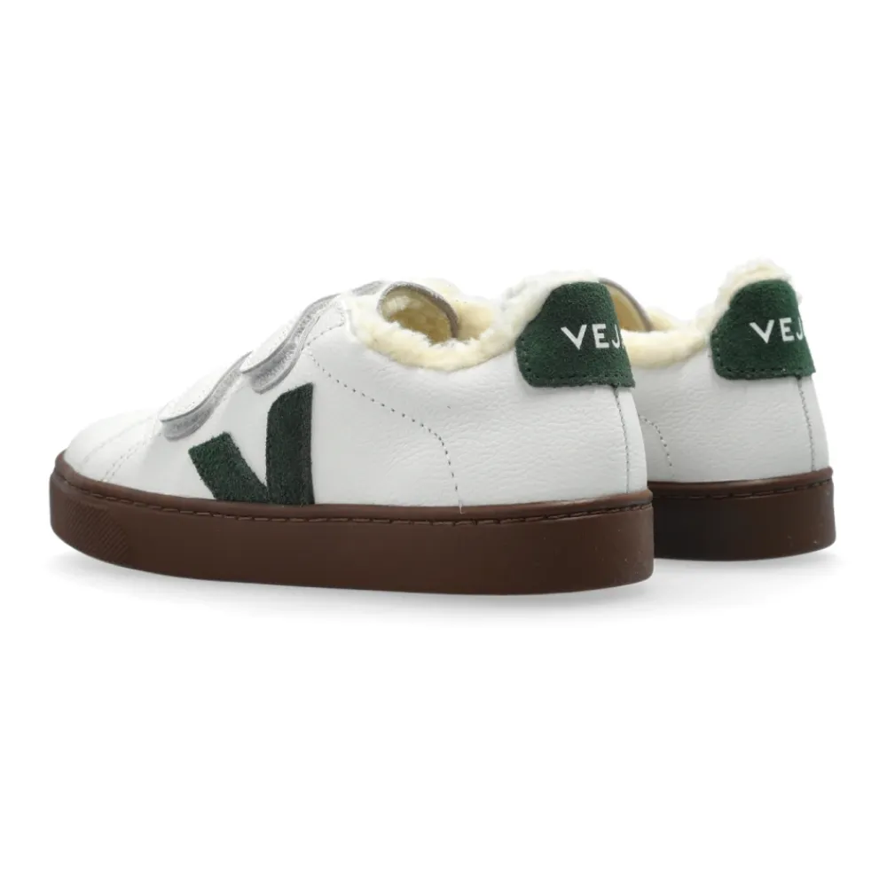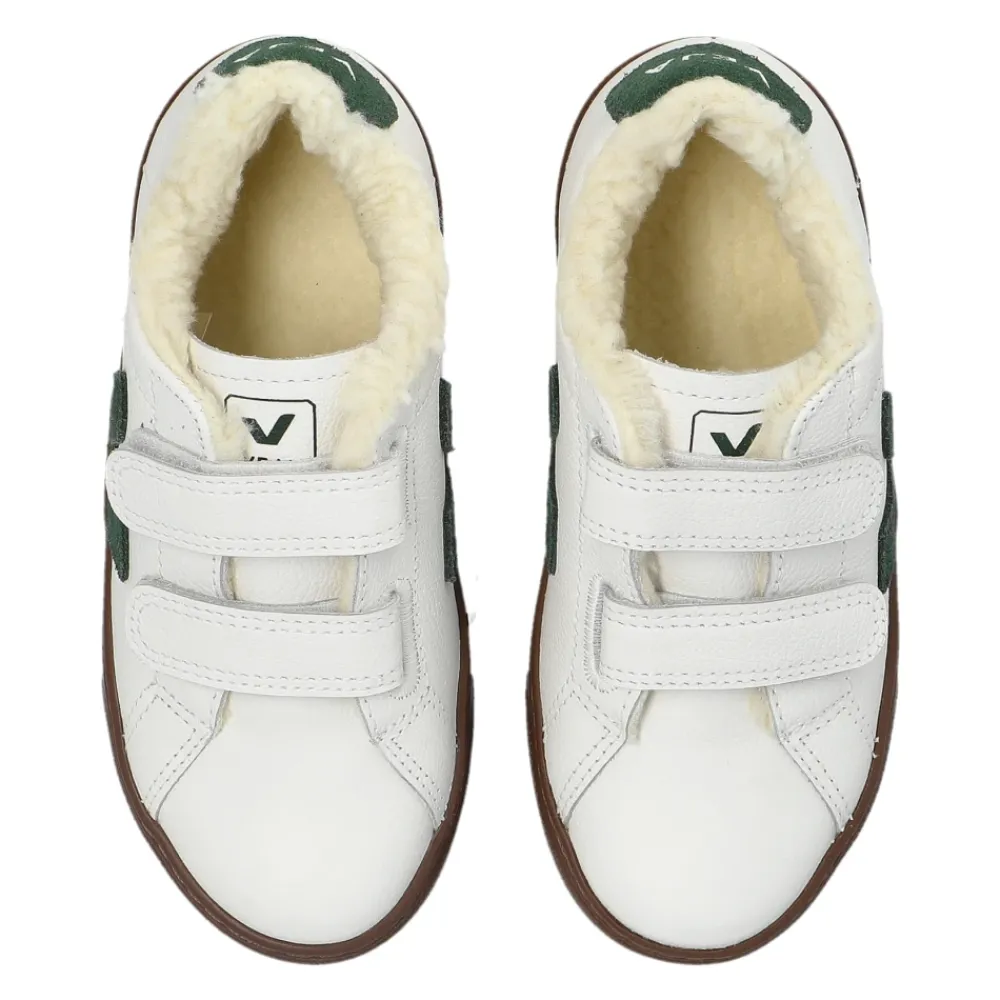 SMALL ESPLAR WINTER LEDER SNEAKER begeistern mit raffinierter Einfachheit und makelloser Handwerkskunst. Die klassische, niedrig geschnittene Silhouette mit einer dezent abgerundeten Zehenpartie harmoniert mit zeitlosem Design, ergänzt durch markante Nähte und das ikonische grüne „V“-Logo der Marke Veja. Durchdacht gestaltete, breite Klettverschlussriemen verleihen diesen Kinderschuhen eine unübertroffene Funktionalität und machen sie zur perfekten Wahl für junge Träger. Sorgfältig ausgewähltes, weißes Vollnarbenleder bildet die äußere Schicht des Schuhs, während das Innere mit cremefarbenem Fell gefüttert ist, was nicht nur für Komfort, sondern auch für Wärme an kalten Tagen sorgt. Die robuste, dunkelbraune Sohle aus Naturkautschuk garantiert Stabilität und Abriebfestigkeit und unterstreicht den kontrastreichen Charakter des Schuhs. Die Verwendung umweltfreundlicher Materialien während der gesamten Produktion spiegelt Respekt für die Umwelt wider. WARUM DIESES PRODUKT WÄHLEN? * Zeitlose Form und elegantes Erscheinungsbild * Hochwertige Materialien für Komfort und Langlebigkeit * Mit Fell gefüttertes Interieur, ideal für kalte Tage * Umweltfreundlicher Ansatz in allen Aspekten der Produktion * Außergewöhnliche Leichtigkeit beim Anziehen dank breiter Klettverschlussriemen Sohlenhöhe an der höchsten Stelle: 2 cm