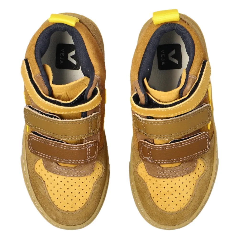 SMALL V-10 MID SUEDE SNEAKERS von Veja Kids sind das Inbegriff moderner Eleganz für die jüngsten Modebegeisterten. Das mittelhohe Obermaterial besteht aus sorgfältig ausgewähltem Wildleder und Vollnarbenleder in verschiedenen Brauntönen, ergänzt durch dezente gelbe Akzente und das ikonische „V“-Logo. SNEAKERKONSTRUKTION – eine breite Gummisohle, abgerundete Zehenkappe und zwei breite Klettverschlussriemen – sorgen für außergewöhnlichen Komfort und Anpassungsfreiheit. Die vordere Perforation fördert die Luftzirkulation, unterstützt die Hygiene während der täglichen Aktivitäten. Details, die auf die Bedürfnisse von Kindern zugeschnitten sind und die Verwendung natürlicher Materialien, drücken sowohl tiefen Respekt für die Umwelt als auch höchstes handwerkliches Können aus. WARUM SOLLTEN SIE DIESES PRODUKT WÄHLEN? * Schuhe aus sorgfältig ausgewähltem Wildleder und Leder gefertigt * Praktischer, breiter Klettverschluss für einfaches An- und Ausziehen * Atmungsaktives perforiertes Obermaterial und rutschfeste Sohle * Einzigartiges, zeitloses Design mit raffinierten Details * Umweltfreundliche Produktion mit Respekt für die Umwelt