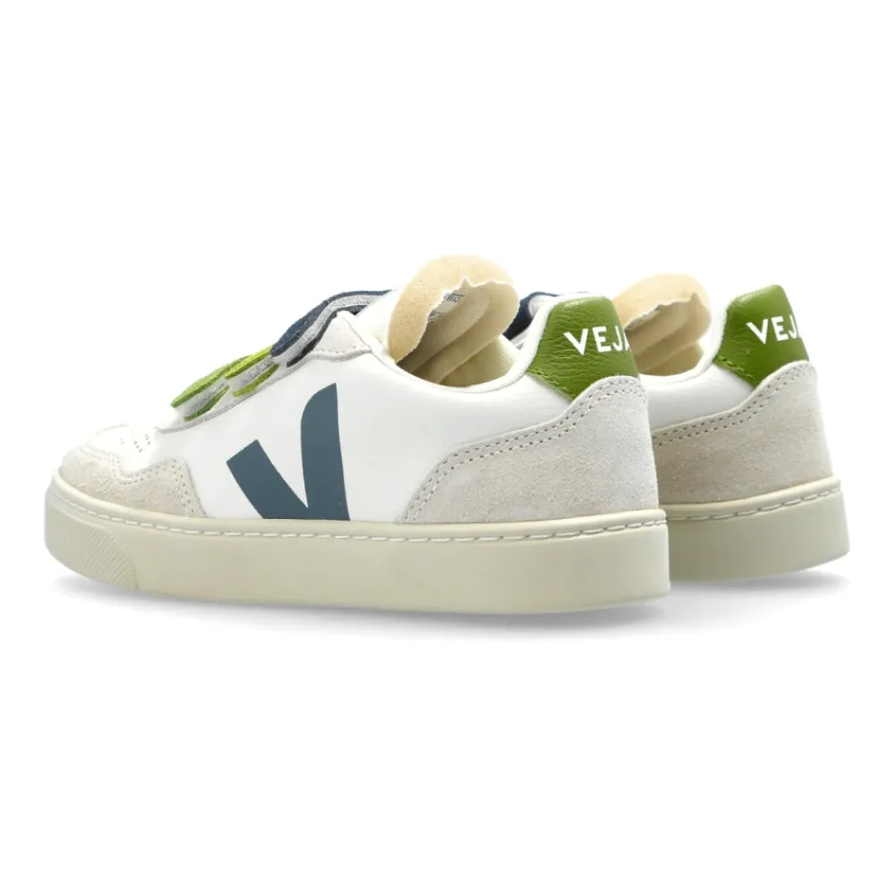 Wir bieten außergewöhnlich ELEGANTE KLEINE V-90 O.T. LEDERSNEAKER von Veja Kids an, die für junge Liebhaber klassischen Stils konzipiert sind. Die flache Silhouette und DAS ZEITLOSE, MINIMALISTISCHE DESIGN werden durch das dezente „V“-Logo an den Seiten und die stilvolle „VEJA“-Inschrift auf der Zunge und der Ferse hervorgehoben. Die Einzigartigkeit dieses Modells wird durch KONTRASTIERENDE KLETTVERSCHLÜSSE in Marineblau und Grüntönen betont, die sich von den schneeweißen, hochwertigen Leder- und Wildlederdetails abheben. Präzise platzierte Perforationen verbessern die Atmungsaktivität und gewährleisten selbst bei intensivem täglichem Gebrauch Komfort. Jedes Paar wird SORGFÄLTIG IN BRASILIEN hergestellt, unter Beachtung der Umwelt und Verwendung natürlicher Rohstoffe, gemäß der Markenphilosophie von Veja. Exklusivität und Umweltschutz werden hier mit zeitloser Ästhetik kombiniert. WARUM SOLLTEN SIE DIESES PRODUKT WÄHLEN? * Design im Einklang mit Entwicklungszielen * Zeitloses und raffiniertes Erscheinungsbild * Außergewöhnlicher Komfort dank weichem Leder und Belüftung * Markante Klettverschlüsse in atemberaubenden Farbtönen * Durchdachte Details für den Komfort und den herausragenden Stil Ihres Kindes. Sohlenhöhe an der höchsten Stelle: 2 cm