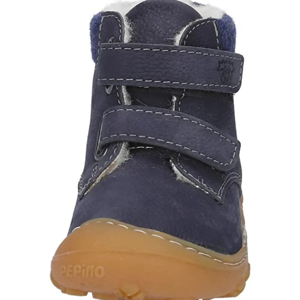NICO blau. Blauer Stiefel mit Klettverschluss, weichem Innenfutter und profilierter Gummisohle.