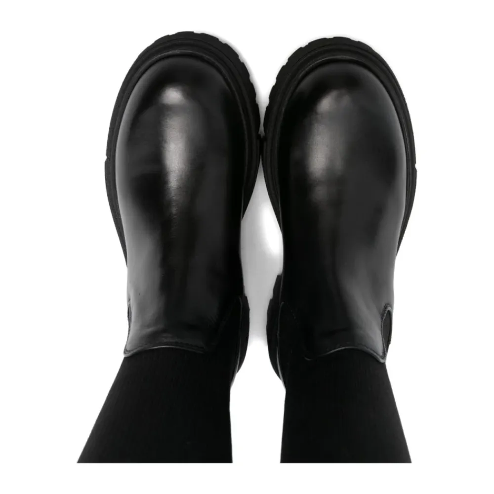 Der Elisabetta Franchi Stiefel zum Reinschlüpfen mit runder Spitze kombiniert ein Obermaterial aus Kalbsleder mit einem gerippten Socke-Einsatz und einer Gummisohle für einfaches Anziehen und alltägliche Traktion. Seine runde Spitze und das Pull-on-Design sind für einen komfortablen, praktischen Gebrauch konzipiert. Hauptmerkmale: Schwarz | Kalbsleder | Gummisohle für zuverlässige Traktion | Slip-on / Pull-on-Verschluss | Stretcheinsatz für leichteres An- und Ausziehen | Runde Spitze | Gerippter Socke-Einsatz | Pull-on-Silhouette | Abmessungen & Passform: Absatzhöhe: 4 cm | Zusammensetzung & Pflege: Futter: Textil 100% | Außenmaterial: Textil 100% | Außenmaterial: Kalbsleder 100% | Sohle: Gummi 100% | Mit einem weichen, feuchten Tuch abwischen. Verwenden Sie einen speziellen Lederreiniger für Lederteile. Nicht in der Maschine waschen. An der Luft und ohne direkte Hitze trocknen lassen.