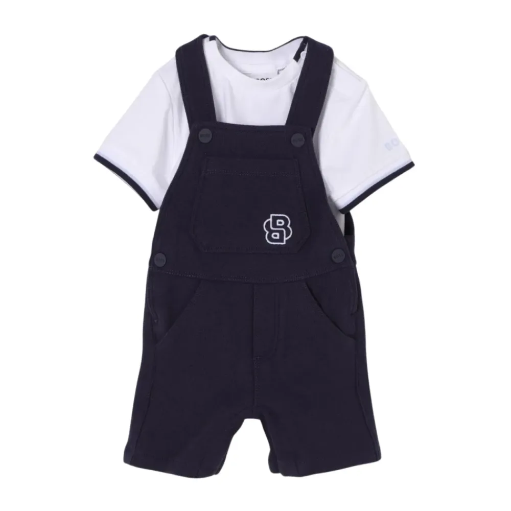 Kleiden Sie Ihr Kleines stilvoll mit dem Hugo Boss Romper Kids Navy. Dieser hochwertige Romper in vielseitiger marineblauer Farbe ist perfekt für jeden Anlass und bietet sowohl Mode als auch Komfort. Hergestellt aus einer weichen Baumwollmischung, hat der Romper ein klassisches Design mit dunkelblauen Latzhosen und einem weißen Hemd.