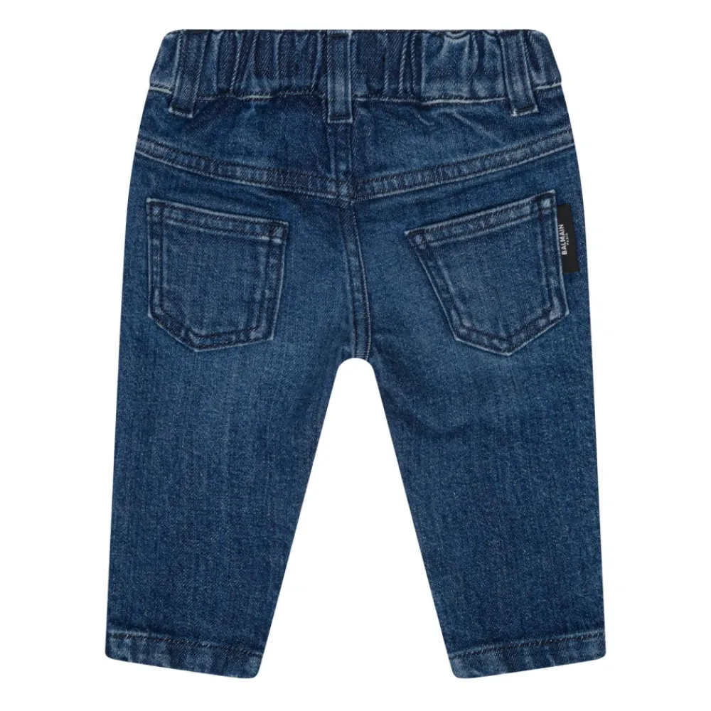 Die Straight Leg Jeans von Balmain vereinen eine entspannte Straight-Leg-Silhouette mit einem elastischen Bund für bequemen Tragekomfort im Alltag. Das Design umfasst markentypische Knopdetails und ein klassisches Five-Pocket-Styling. Hauptmerkmale: Blau | Elastischer Bund | Gürtelschlaufen | Five-Pocket-Design | Straight-Leg-Silhouette | Knopfdetails mit Logo | Label auf den Gesäßtaschen | Ton-in-Ton-Steppnähte | Maße und Passform: Straight Leg | Elastischer Bund