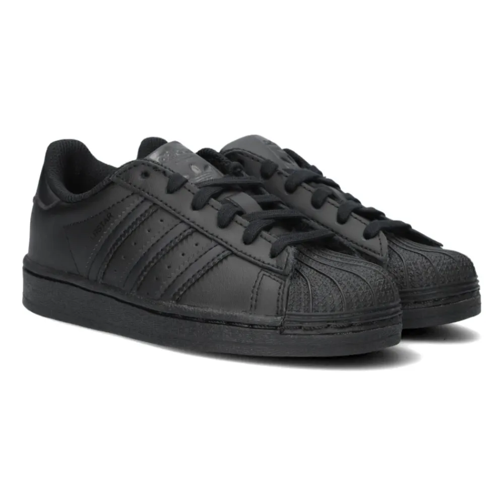 Führe die Jüngsten an Adidas Originals heran mit den Superstar Low Sneakers, einer Mischung aus Stil und Komfort mit Textilfutter und Details in Lederoptik. Wichtige Merkmale: Schwarz | Textil und Lederoptik | Iconische 3-Streifen mit gezackten Kanten | Perforationen zwischen den Streifen | Gummizehenkappe | Branding auf Zunge, Ferse und Seite |