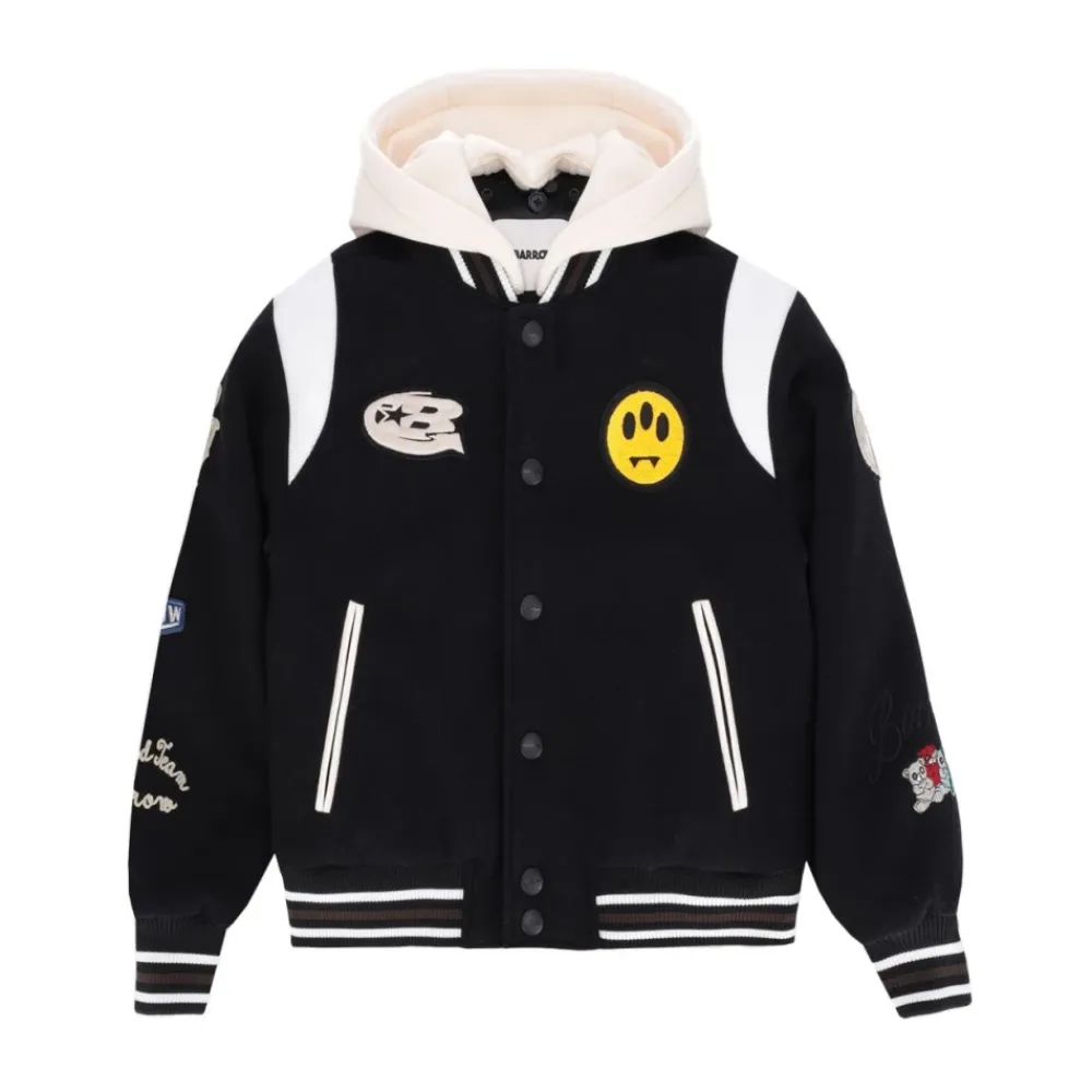 BARROW Kapuzenjacke, die Ärmel im College-Stil mit einem gestickten Logo und Applikationsdetails kombiniert. Das Design mit Knopfleiste und angesetzter Kapuze macht sie zu einer praktischen Wahl für den Alltag. Hauptmerkmale: Schwarz | Polyester | Kapuze | Knopfverschluss | College-Ärmel | Gesticktes Logo | Applikationsdetails | Zusammensetzung und Pflege: 100 % Polyester | Waschanleitung des Herstellers beachten.