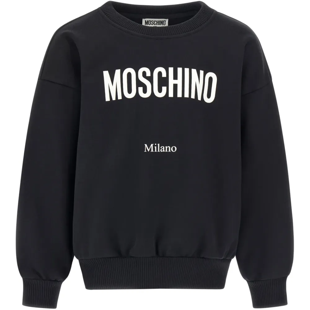Moschino Sweatshirt mit kontrastierendem Print-Logo und Rippstrickdetails, entworfen für den Alltag. Hauptmerkmale: Schwarz | Nero | Rundhalsausschnitt | Gedrucktes Logo in Kontrastfarbe | Lange Ärmel | Rippstrickdetails
