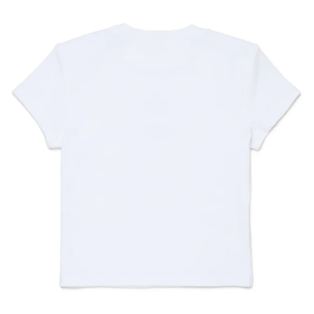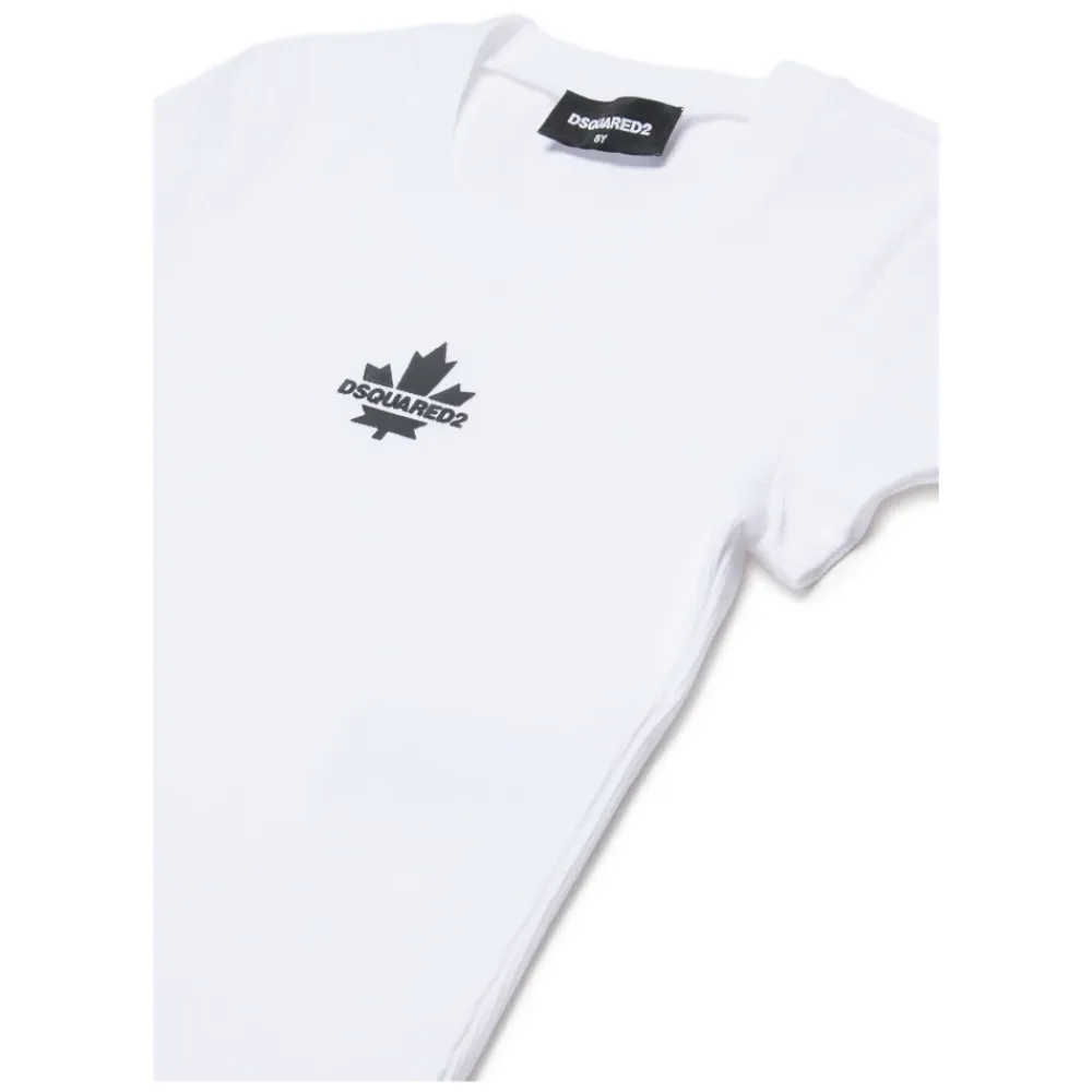Dsquared2 T-Shirt in gerippter Ausführung mit kurzen Ärmeln und Gummi-Logo. Entworfen für lässige Alltagskleidung mit einem klaren Rundhalsausschnitt. Hauptmerkmale: Weiß | Bianco | Geripptes Material | Kurze Ärmel | Rundhalsausschnitt | Gummi-Logo
