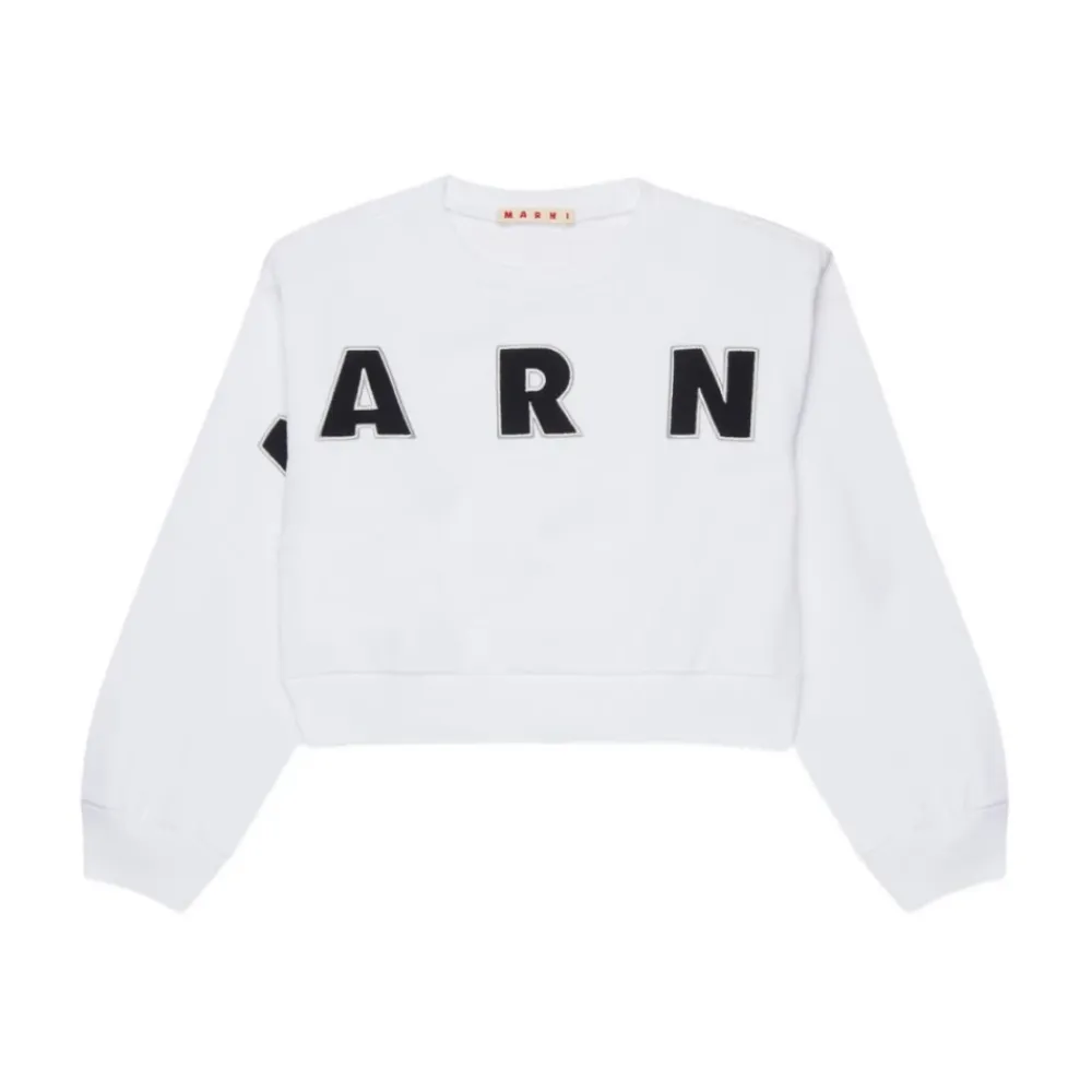 Marni Sweatshirt mit einem weißen Logo-Detail, Rundhalsausschnitt und gerippten Abschlüssen. Lange Ärmel bieten eine bequeme Schicht für den Alltag. Hauptmerkmale: Weiß | Rundhalsausschnitt | Gerippte Abschlüsse | Lange Ärmel | Weißes Logo-Detail