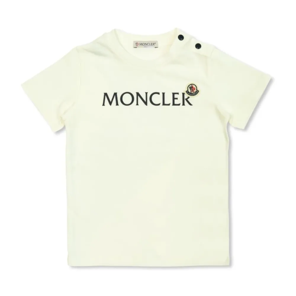 Moncler T-Shirt mit einem schlichten, einfarbigen Design mit gesticktem Logo-Schriftzug und einem Marken-Brustaufnäher. Es hat einen Rundhalsausschnitt, einen Schulterknopfverschluss, kurze Ärmel und einen geraden Saum für den Alltag. Hauptmerkmale: Weiß | Schulterknopfverschluss | Rundhalsausschnitt | Kurze Ärmel | Gerader Saum | Gestickter Logo-Schriftzug vorne | Marken-Brustaufnäher | Einfarbiges Design