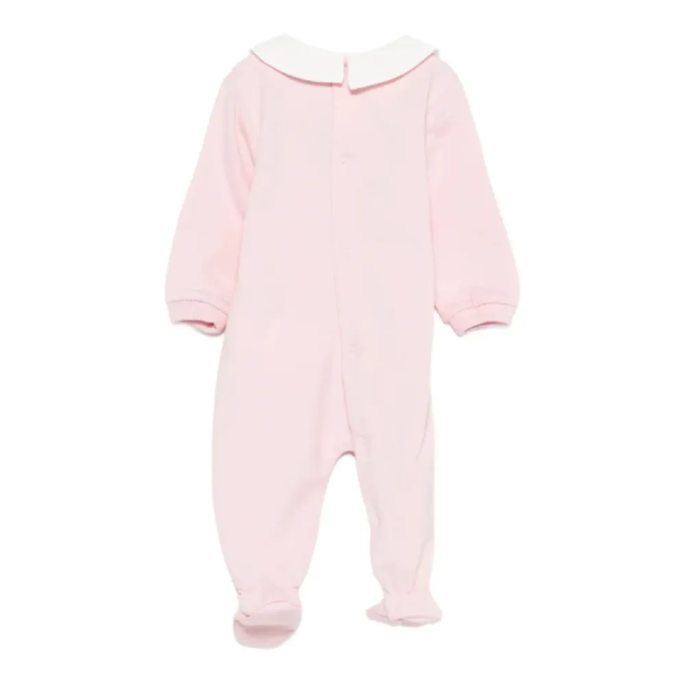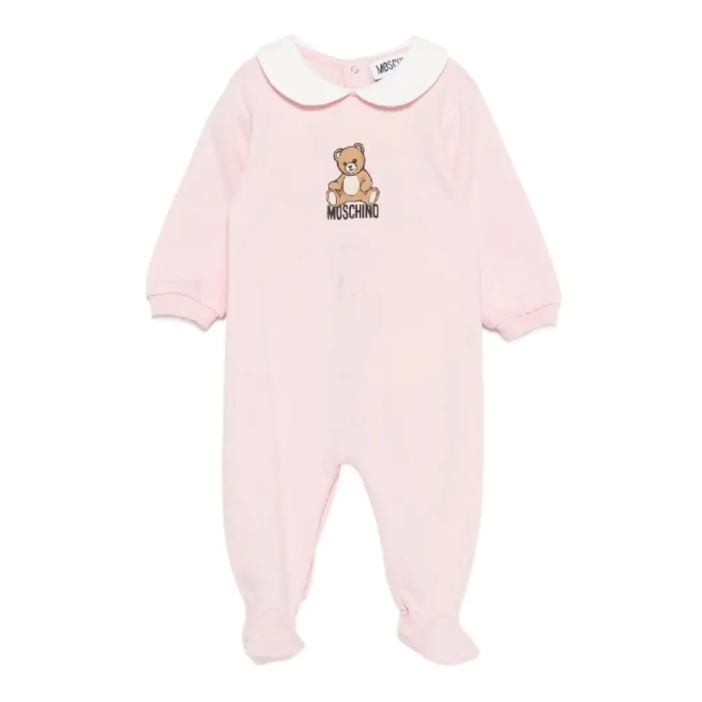 Moschino Tutina ML ist ein Baumwoll-Einteiler mit einem Bubikragen und einem Teddybär-Print, der für bequemes Tragen im Alltag entworfen wurde. Hauptmerkmale: Pink | Zuckerrosa | Baumwolle | Druckknopfverschluss | Fußteil | Stretch-Bündchen | Bubikragen | Lange Ärmel | Teddybär-Print | Rippbündchen | Maße & Passform: Normale Passform | Zusammensetzung & Pflege: Baumwolle