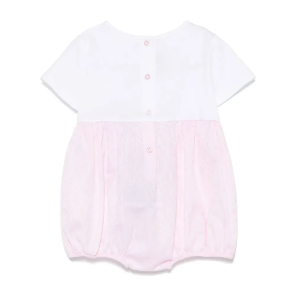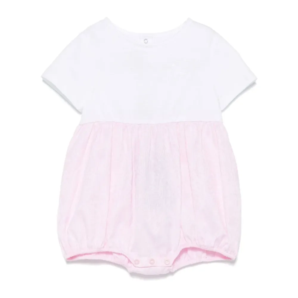 Etro Tutina ist ein zweifarbiger Strampler mit Rundhalsausschnitt und halben Ärmeln. Das Design verfügt über Knopfverschlüsse für einfaches Anziehen und einen schlichten, zweifarbigen Look. Hauptmerkmale: Rosa | Knopfverschlüsse | Knopfverschluss hinten | Zweifarbiges Design | Rundhalsausschnitt | Halbe Ärmel