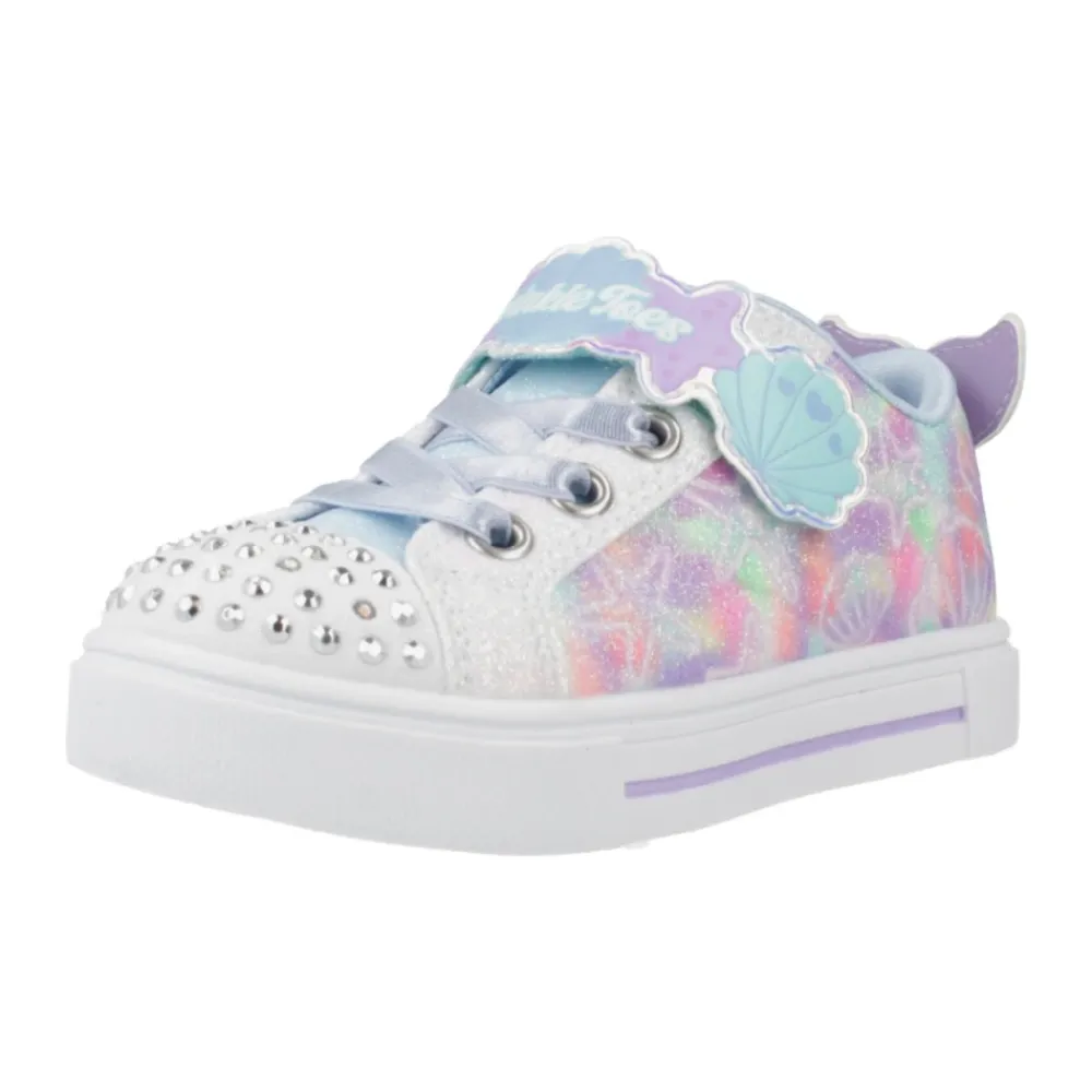 Skechers Twinkle Sparks Sneakers kombinieren leuchtende Details und verspielte Verzierungen für den Alltag. Das Design konzentriert sich auf einfaches An- und Ausziehen und gepolsterten Komfort. Wichtige Merkmale: Multicolor | Multicolored | Canvas | Leuchtendes Zehendetail | Stoßdämpfende, vulkanisierte Zwischensohle | Flexible Traktionslaufsohle | Gepolsterte Komfort-Innensohle | Adaptiver, leicht zu bedienender Verschluss | Stretch-Schnürsenkel | Verstellbarer Ristriemen | An/Aus-Lichtknopf (ausgewählte Größen) | Obermaterial mit Muscheldruck | Mit Strasssteinen verzierte Zehenkappe | Twinkle Sparks Logo-Detail | Maße & Passform: Absatzhöhe: 2,54 cm | Weite: Medium
