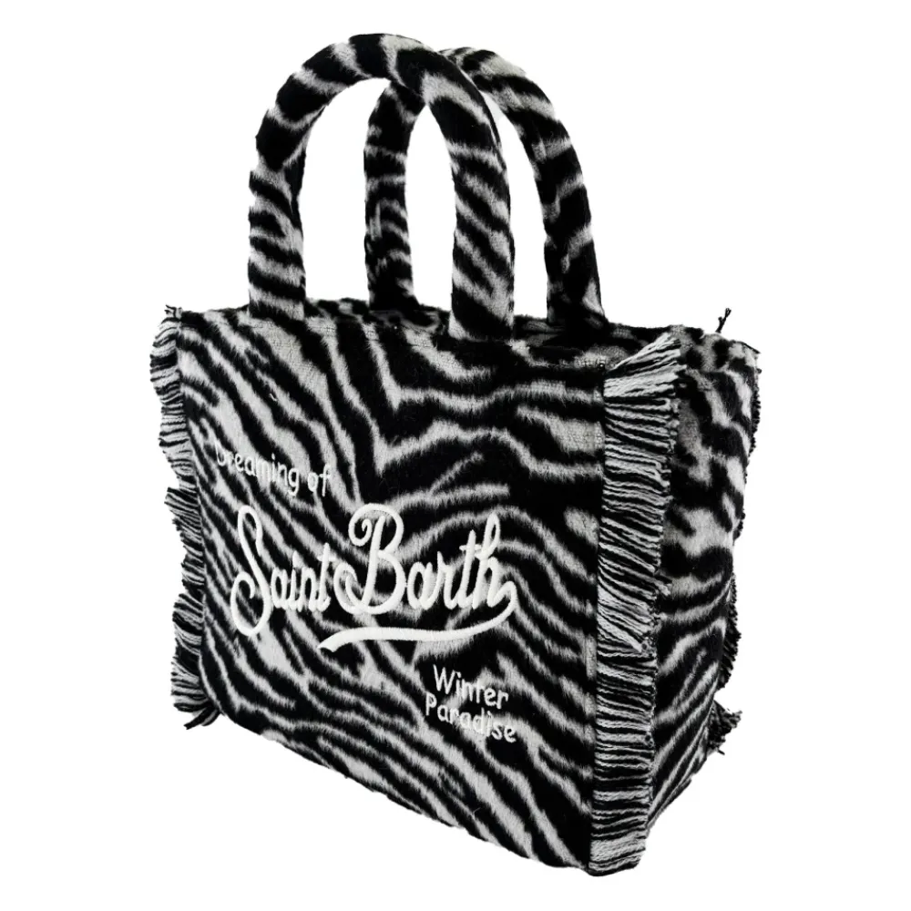 MC2 Saint Barth Vivian Handtasche aus weichem Teddy-Stoff mit einem auffälligen Zebra-Print. Die Tasche kombiniert ein markantes, gesticktes Saint Barth-Logo mit einem abnehmbaren Schulterriemen und Griffen aus Synthetikleder für einen vielseitigen Alltagsgebrauch. Hauptmerkmale: Schwarz | Polyester | Abnehmbarer Schulterriemen | Griffe aus Synthetikleder | Sorgfältig verarbeitete Details | Zebra-Print | Gesticktes Saint Barth-Logo | Auffälliges Animal-Print-Design | Abmessungen und Passform: 30 x 20 x 12 cm | Zusammensetzung und Pflege: 85 % Polyester | 15 % Wolle | Befolgen Sie die Waschanleitung auf dem Etikett im Inneren des Kleidungsstücks.