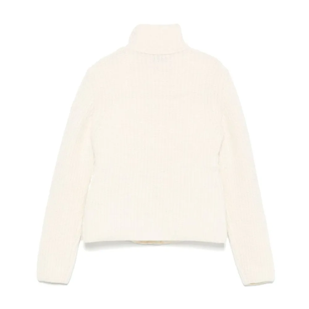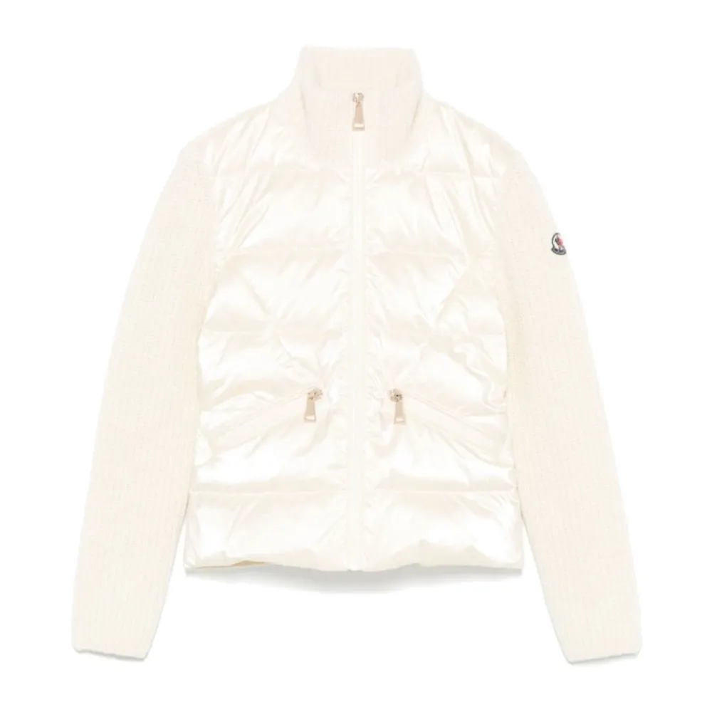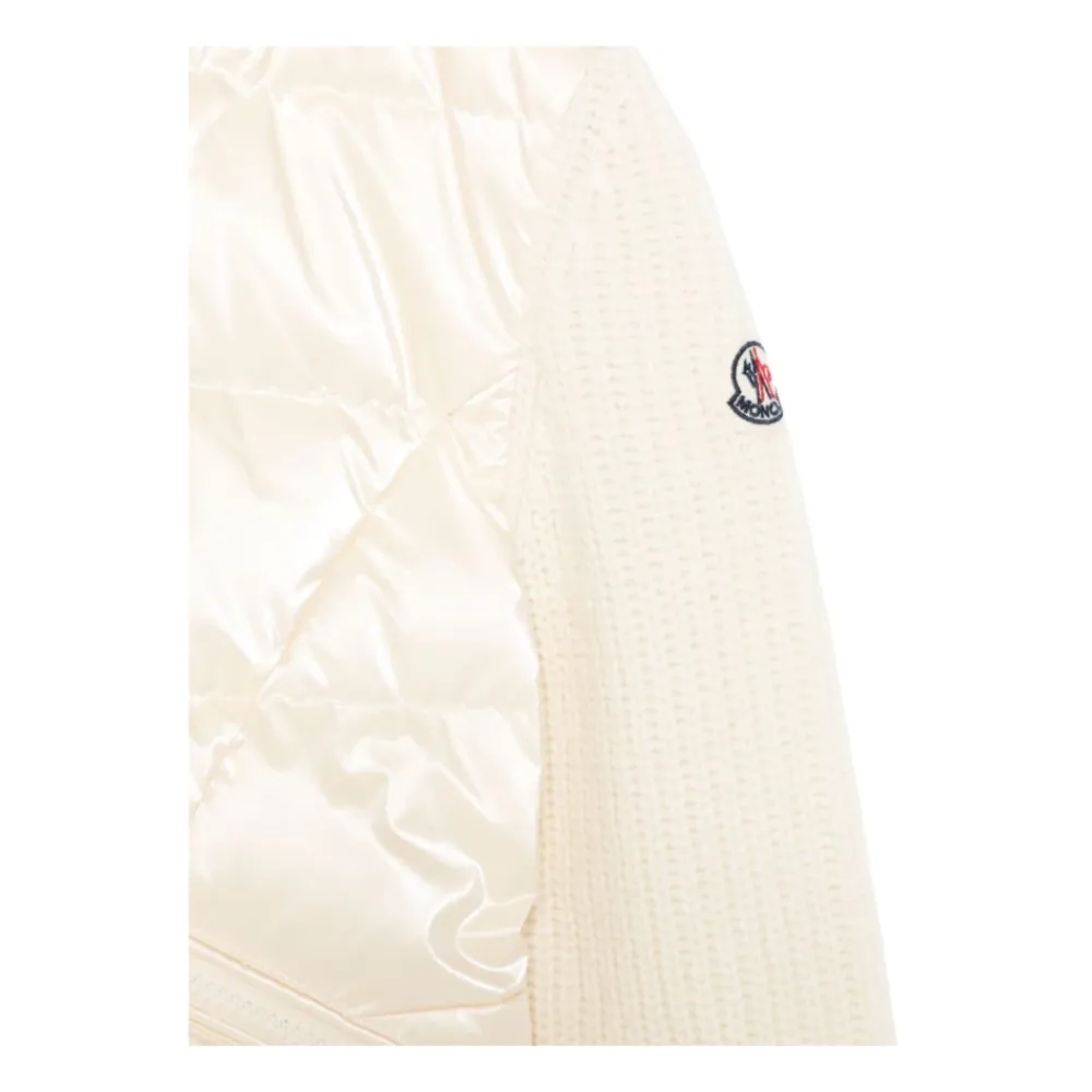 Die Moncler wattierte Strickjacke mit Wollanteil und Reißverschluss kombiniert ein gestricktes Oberteil mit einer gesteppten, daunen gefüllten Vorderseite für zuverlässige Wärme und Alltagstauglichkeit. Das Design vereint gemütliche Strickdetails mit praktischen Eigenschaften wie einem Reißverschluss und einer Kapuze. Hauptmerkmale: Beige | Creme | Schurwolle | Isolierte (daunen gefüllte) Vorderseite | Warme Strickkonstruktion | Reißverschluss vorne | Seitliche Reißverschlusstaschen | Hoher Kragen | Kapuze | Lange Ärmel | Gestrickte und wattierte Einsatzteile | Mini-Logo auf dem Ärmel | Gerader Saum | Materialzusammensetzung und Pflege: 100 % Schurwolle | 100 % Polyester | Handwäsche; nicht bleichen; nicht im Trockner trocknen; Bügeln bei maximal 110 °C ohne Dampf; nicht chemisch reinigen; liegend im Schatten trocknen.