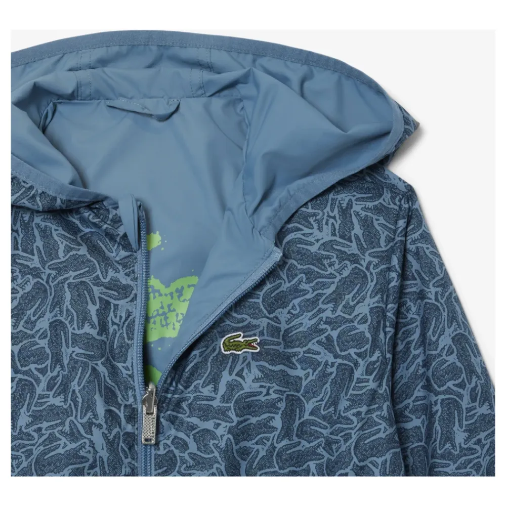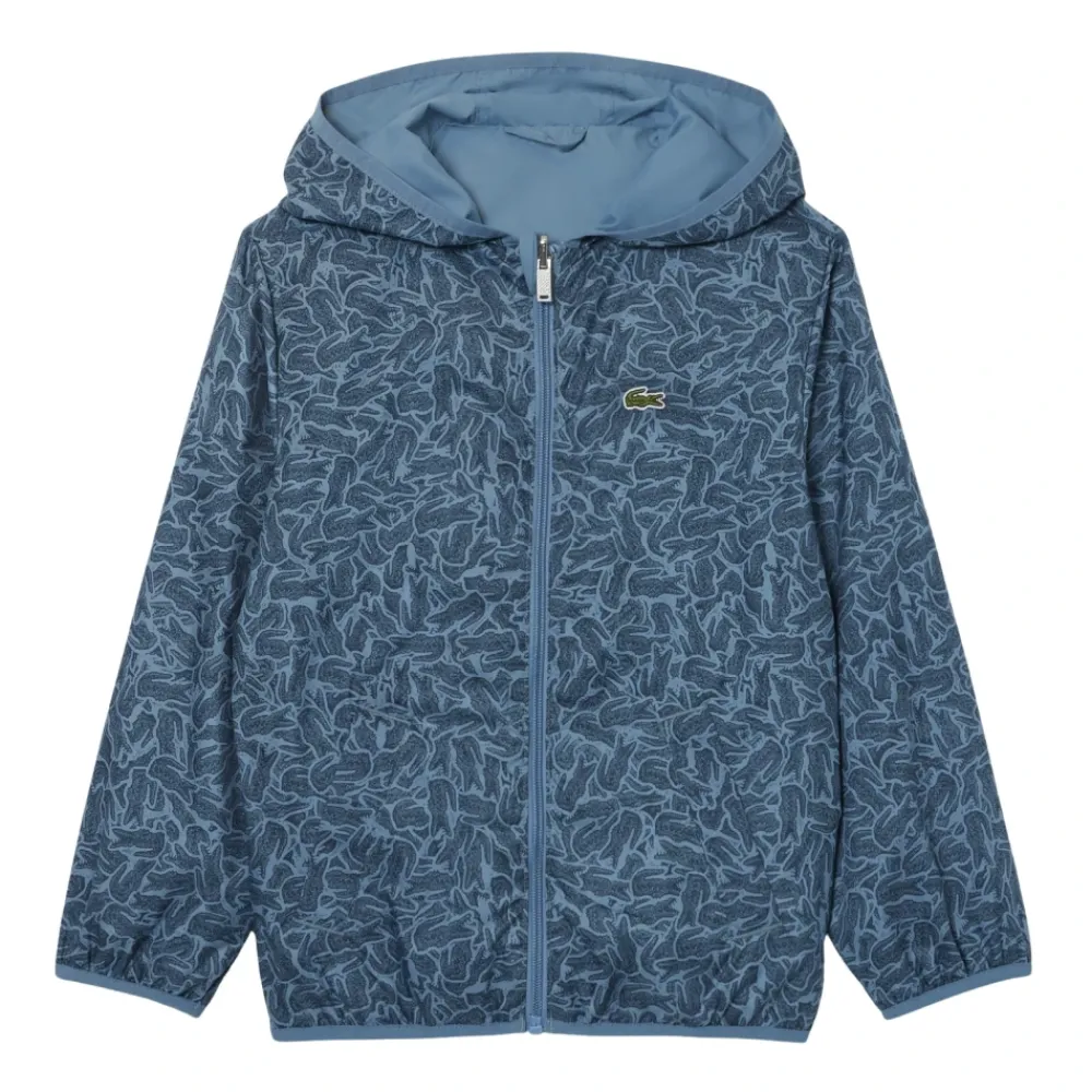 Lacoste Wendbare Trainingsjacke für Kinder in Blau ist perfekt für den Herbst und Frühling. Diese Trainingsjacke verfügt über eine Kapuze und lange Ärmel, hergestellt aus 100% Polyester für eine bequeme Passform. Die Jacke hat eine normale Passform und ist mit einem einfarbigen und bedruckten Muster versehen. Der Reißverschluss und zwei Außentaschen bieten eine einfache Aufbewahrungsmöglichkeit für kleine Gegenstände. Ideal für aktive Kinder, die beim Spielen oder Sport stilvoll aussehen möchten. Produktcode: BJ8407 00 CUN.
