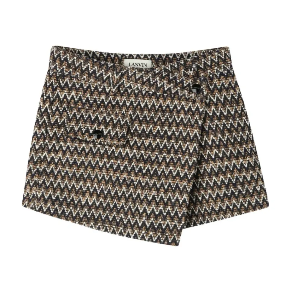 Die Lanvin Wickelshorts kombinieren ein auffälliges Chevron-Muster mit einem Wickel-Knopfverschluss und einem Lederetikett. Der asymmetrische Saum verleiht eine moderne Silhouette, die sich für auffällige Stylings eignet. Hauptmerkmale: Multicolor | Beige Nero | Leder | Knopfverschluss | Wickelstil | Chevron-Muster | Asymmetrischer Saum | Lederetikett