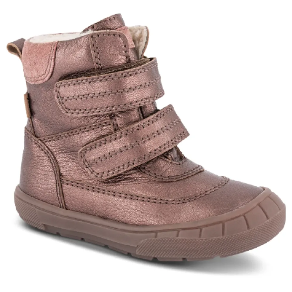 Hier sind die Skofus Winterstiefel für Mädchen, perfekt für kalte und nasse Wintertage. Mit einer Tex-Membran und einem Teddyfutter sind diese Stiefel warm, wasserdicht und atmungsaktiv, was optimalen Komfort und ein trockenes und angenehmes Klima für kleine Füße gewährleistet. Das metallische Lederoberteil verleiht einen Hauch von Stil, während die herausnehmbaren Einlegesohlen, mit weichem Teddy gefüttert, zusätzliche Wärme bieten. Die flexiblen und leichten TPR-Laufsohlen bieten guten Halt. Die beiden Klettverschlüsse ermöglichen ein einfaches An- und Ausziehen und sorgen für eine gute Passform. Wir empfehlen, 1-1,5 cm für das Wachstum hinzuzufügen.