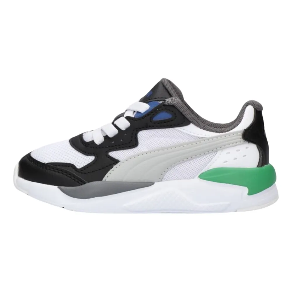 Lassen Sie Ihre sportliche Seite mit dem neuen Modell X-RAY SPEED von PUMA strahlen. Dieser Sneaker verfügt über ein weißes Mesh-Außenmaterial mit schwarzen, grauen, blauen und grünen Leder-Look-Akzenten. Das PUMA-Logo in grauem Leder-Look sticht hervor, während die weiße Sohle mit bunten Stücken verziert ist. Innen sorgen ein Mesh-Futter und eine herausnehmbare Einlegesohle für Komfort. Die Gummisohle unterstreicht das robuste Aussehen mit kühnen Formen und feinen Texturen und bietet hervorragenden Halt und Stabilität. Hinweis: Kleinere Größen werden mit elastischen Schnürsenkeln geliefert, während größere Größen normale Schnürsenkel haben.