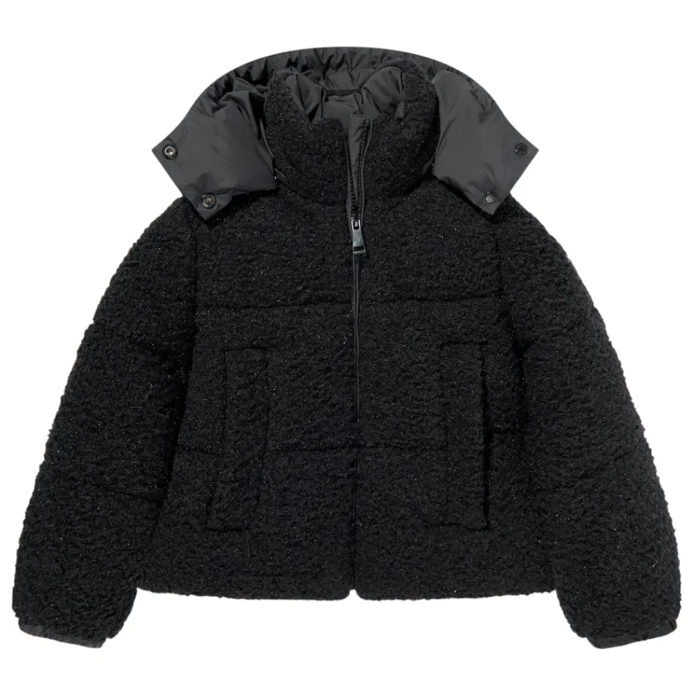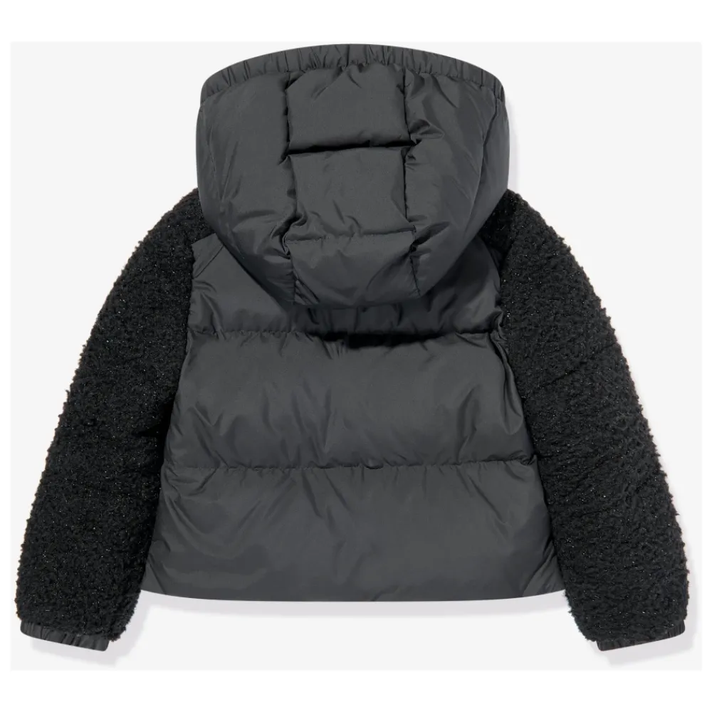 Die Moncler Zambaga Daunenjacke kombiniert eine plüschige Teddy-Textur mit Daunenisolierung für zuverlässige Wärme bei kaltem Wetter. Die abgestufte Konstruktion der Jacke und das mit Borg besprenkelte Glitzerdetail verleihen ihr ein verspieltes, auffälliges Finish. Hauptmerkmale: Schwarz | Polyester | Isoliert mit weißen Gänsedaunen | DIST-zertifizierte Daunenfüllung | Abnehmbare Druckknopfkapuze | Frontreißverschluss | Seitentaschen | Elastische Bündchen und Saum | Abgestufte Konstruktion | Mit Borg besprenkelter Glitzereffekt | Teddy-Textur mit Metallic-Faden | Ikonischer, gefilzter Logoaufnäher | Lange Ärmel | Zusammensetzung & Pflege: 100% Polyester (Obermaterial) | Weiße Gänsedaunen (Füllung) | Nylon (Futter)