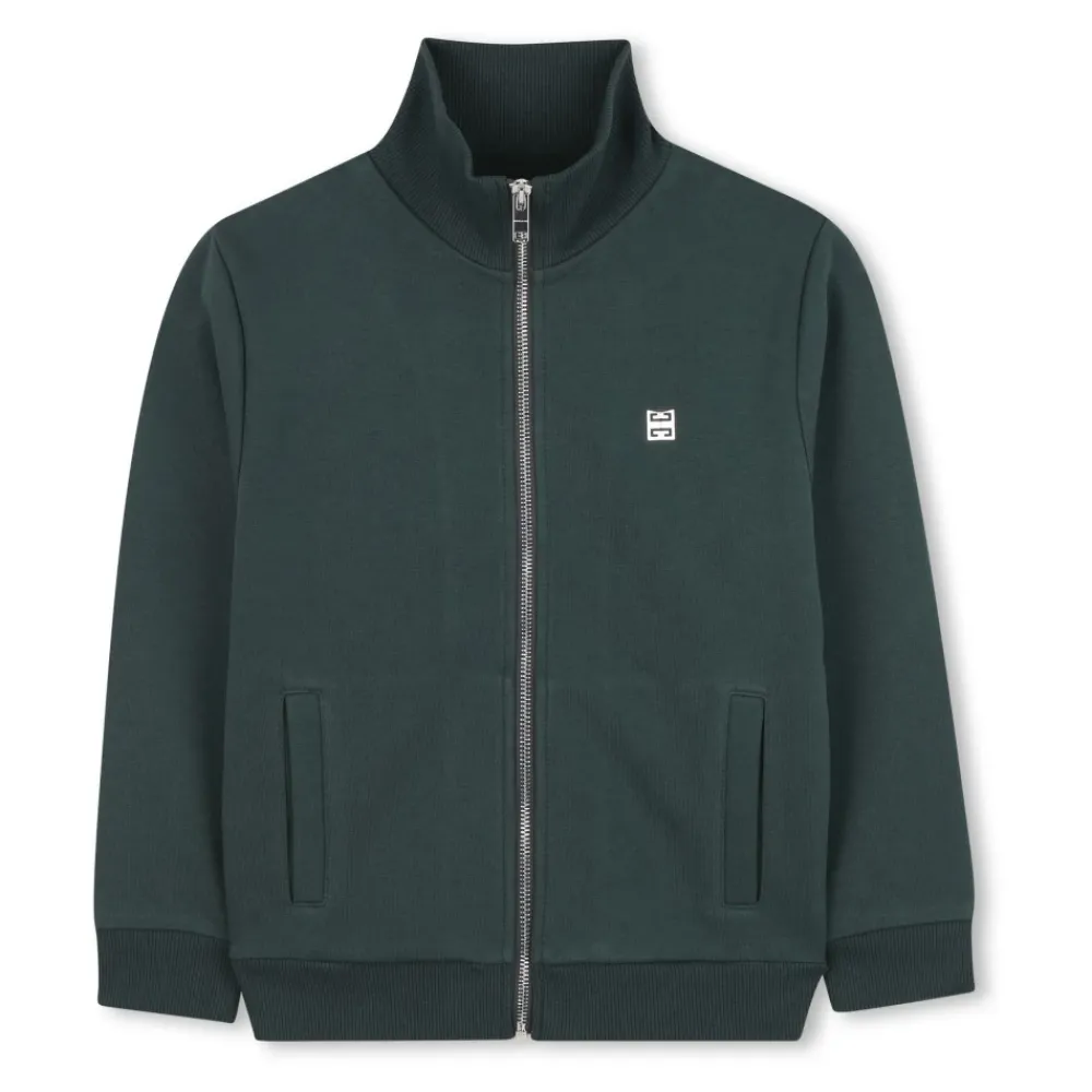 Das Givenchy Zip-Sweatshirt mit Logo und Reißverschluss kombiniert eine schlichte Silhouette mit Reißverschluss vorne und einem gestickten Logo für einen eleganten, lässigen Look. Entworfen für einfaches Tragen und alltägliche Schichtung. Hauptmerkmale: Grün | Reißverschluss vorne | Seitentaschen | Gesticktes Logo | Gerippter Saum und Bündchen
