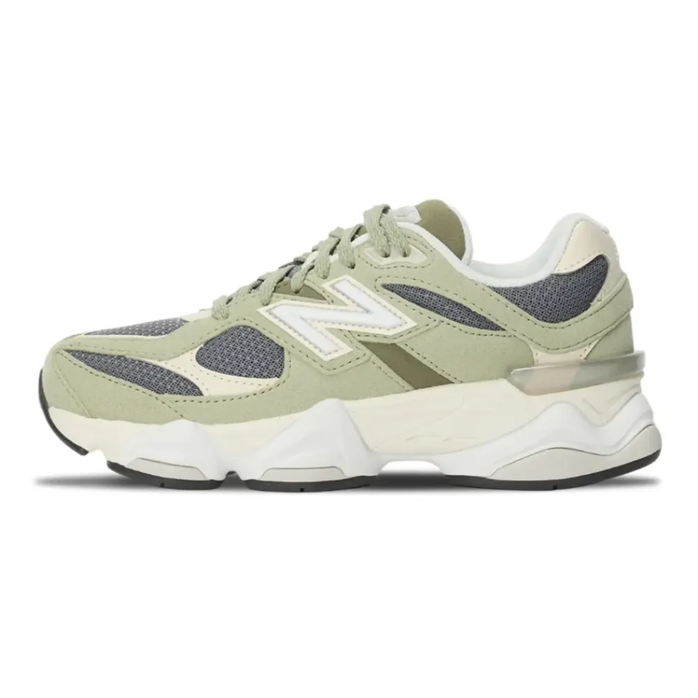 Die New Balance 9060 J Sneakers kombinieren eine futuristische Silhouette mit ABZORB-Dämpfung und einer weichen EVA-Mittelsohle, um bequeme und stützende Schuhe für den Alltag zu bieten. Hauptmerkmale: Grün | Hellgrau | Beige | Leder, synthetische Materialien und Mesh | EVA-Mittelsohle für weiche Dämpfung | ABZORB-Stoßdämpfung | Strapazierfähige Gummi-Außensohle für Traktion | Traditioneller Schnürverschluss | Dicke, gut gepolsterte Mittelsohle | Geformte Pod-Mittelsohle | Multicolor-Einsätze mit Kontrastakzenten | Futuristische, Y2K-inspirierte Silhouette | Maße & Passform: fit_information | measurements | Material & Pflege: Leder | Synthetische Materialien | Mesh