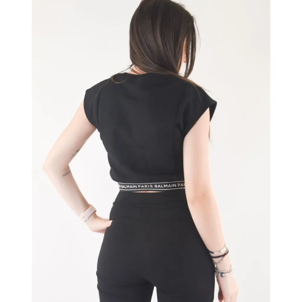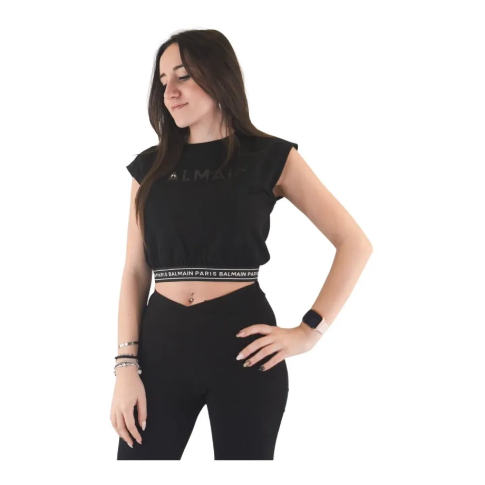 Balmain Ärmelloses Sweatshirt mit Rundhalsausschnitt, aufgesetztem Silikon-Logo-Patch und elastischem Saum mit wiederholtem Logo. Leichtes, ärmelloses Design zum Layern in der Übergangszeit. Hauptmerkmale: Schwarz | Nero | Baumwolle | Elastischer Saum mit wiederholtem Logo | Rundhalsausschnitt | Ärmellos | Aufgesetzter Silikon-Logo-Patch auf der Brust | Gerippter Kragen | Zusammensetzung & Pflege: 100% Baumwolle | Maschinenwäsche bei 30°C; nicht bügeln; nicht mit hellen Farben waschen; keine Bleichmittel verwenden.