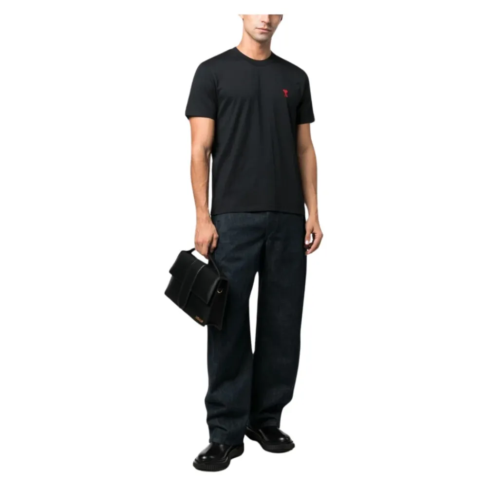 Werten Sie Ihren lässigen Stil mit diesem schwarzen Ami Paris ‚Ami De Coeur‘ T-Shirt mit kurzen Ärmeln auf. Hergestellt aus 100% Baumwolle, verfügt es über ein rotes Logo, das auf der Brust gestickt ist, und tonales ‚Ami‘ -Stickerei unter dem hinteren Ausschnitt. Mit Rundhalsausschnitt, geradem Saum und klassischer Passform ist dieses T-Shirt ein vielseitiges Garderoben-Essential für Männer l Dieser Stil ist unisex. Für Männer: Wählen Sie Ihre normale Größe, wenn Sie eine enge Passform wünschen. Wählen Sie eine Nummer größer, wenn Sie eine normale Passform bevorzugen. Für Frauen: Wählen Sie eine Nummer kleiner als Ihre übliche Größe.