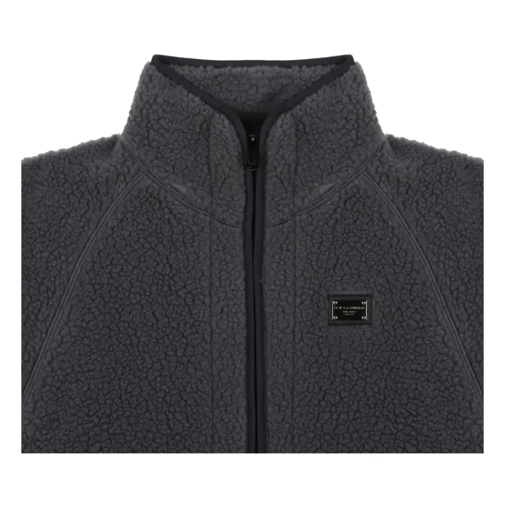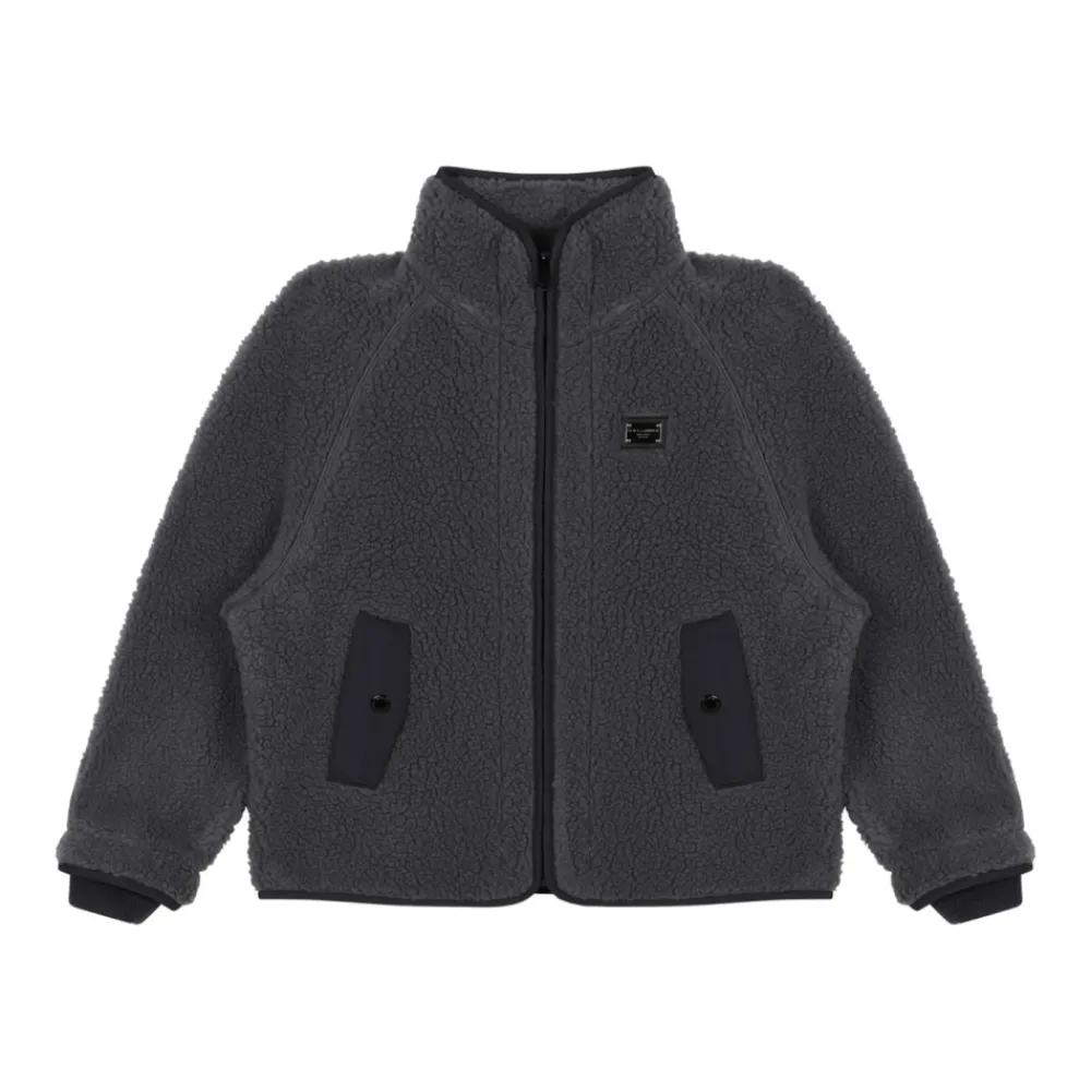 Heben Sie den Stil Ihres kleinen Mannes mit dieser Dolce & Gabbana Kids Anthrazitgrauen Jacke hervor. Die Jacke verfügt über ein Design in anthrazitgrauem Kunstpelz, silberfarbene Logo-Plakette, vorderer Reißverschluss, Stehkragen, lange Raglanärmel, gerippte Bündchen und zwei vordere Leistentaschen. Ungefüttert mit abgerundetem Saum für einen trendigen Look.