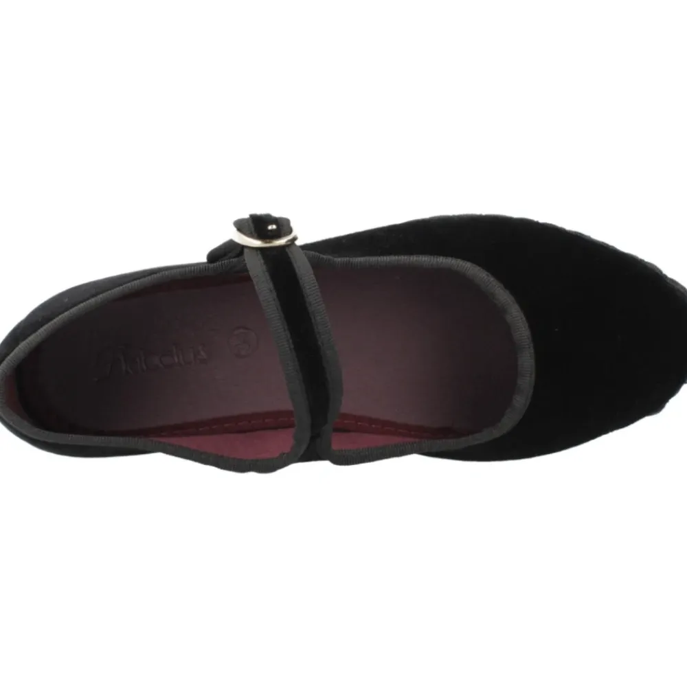 Flabelus Antonia ist eine Mary Jane aus Samt mit Schnallenverschluss, die für bequemes Tragen im Alltag entwickelt wurde. Sie kombiniert ein Obermaterial aus weichem Samt mit einer ultraleichten, ergonomischen Sohle für einfache Bewegungen. Hauptmerkmale: Schwarz | Samt | Antibakterielles Futter | Ergonomisches Design für natürlichen Gang | Ultraleichte, flexible Innensohle | Strapazierfähige Gummisohle | Verstellbarer Schnallenriemen | Mary Jane Silhouette | Gerippter Besatz | Schnallenverschluss | Maße & Passform: Fällt klein aus – bestelle eventuell eine halbe Nummer größer. | Zusammensetzung & Pflege: Außenmaterial: 100 % Baumwollsamt | Innenmaterial (Futter): 100 % Baumwolle (antibakterielle Behandlung) | Sohle: Gummi (aus Fahrradreifen)
