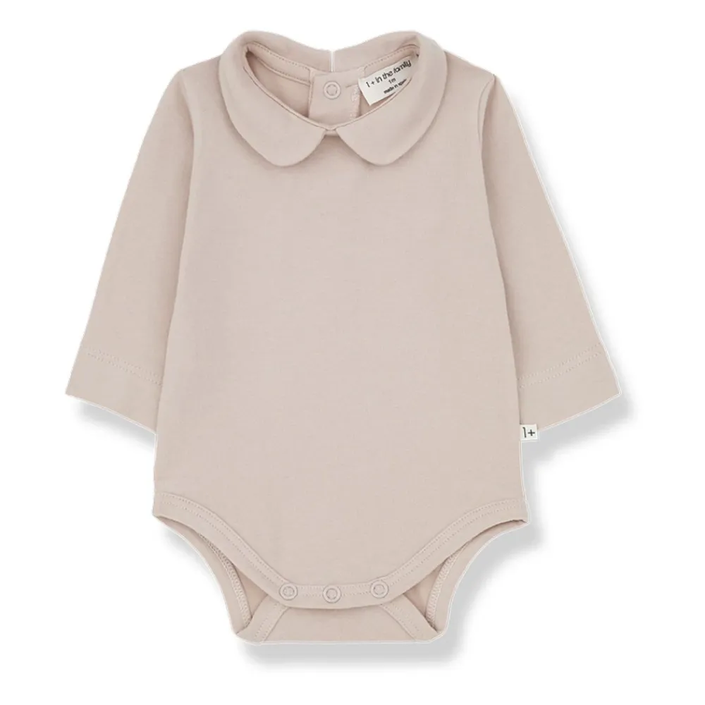 1 + IN THE FAMILY Anette nude Baumwollbody für Mädchen, mit langen Ärmeln, Peter Pan-Kragen, Knopfverschluss unten und Knopfverschluss hinten.