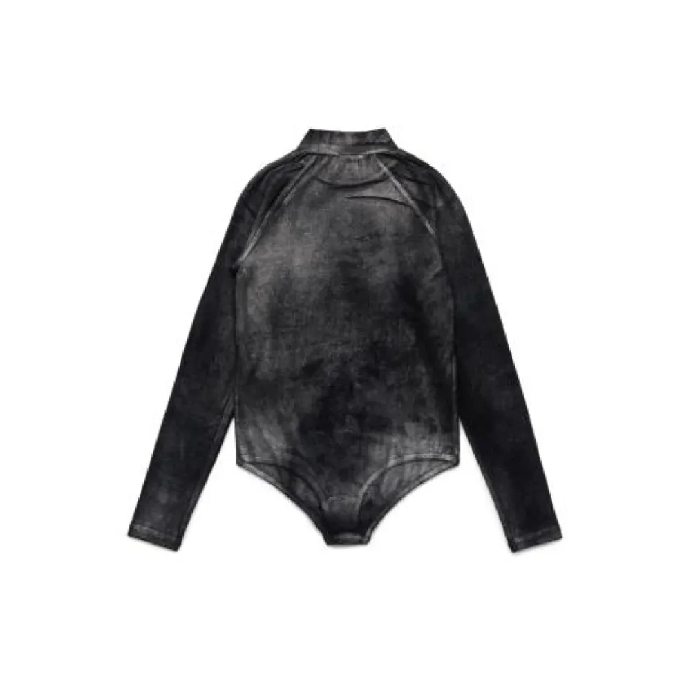 Das Diesel Balda T-Shirt ist ein figurbetonter Body mit Stehkragen und Druckknopfverschluss. Der Marmoreffekt und das Logo-Detail verleihen ihm einen unverwechselbaren Look, während das Stretchmaterial für bequeme Bewegungsfreiheit sorgt. Hauptmerkmale: Schwarz | Baumwolle | Stretchmaterial | Druckknopfverschluss | Stehkragen | Lange Ärmel | Raglanärmel | Marmoreffekt | Logo-Detail | Abmessungen und Passform: Figurbetonter Schnitt | Materialzusammensetzung und Pflege: 95 % Baumwolle | 5 % Elastan | Maschinenwäsche kalt, Schonwaschgang. Nicht bleichen. Trocknergeeignet bei niedriger Temperatur oder liegend trocknen. Bügeln bei niedriger Temperatur.