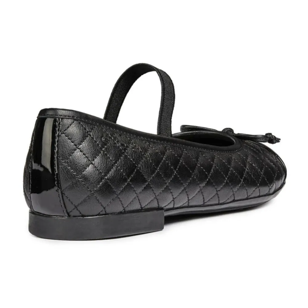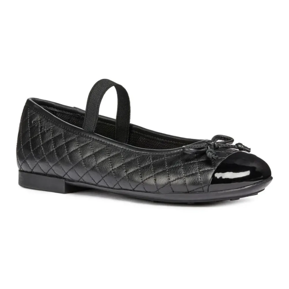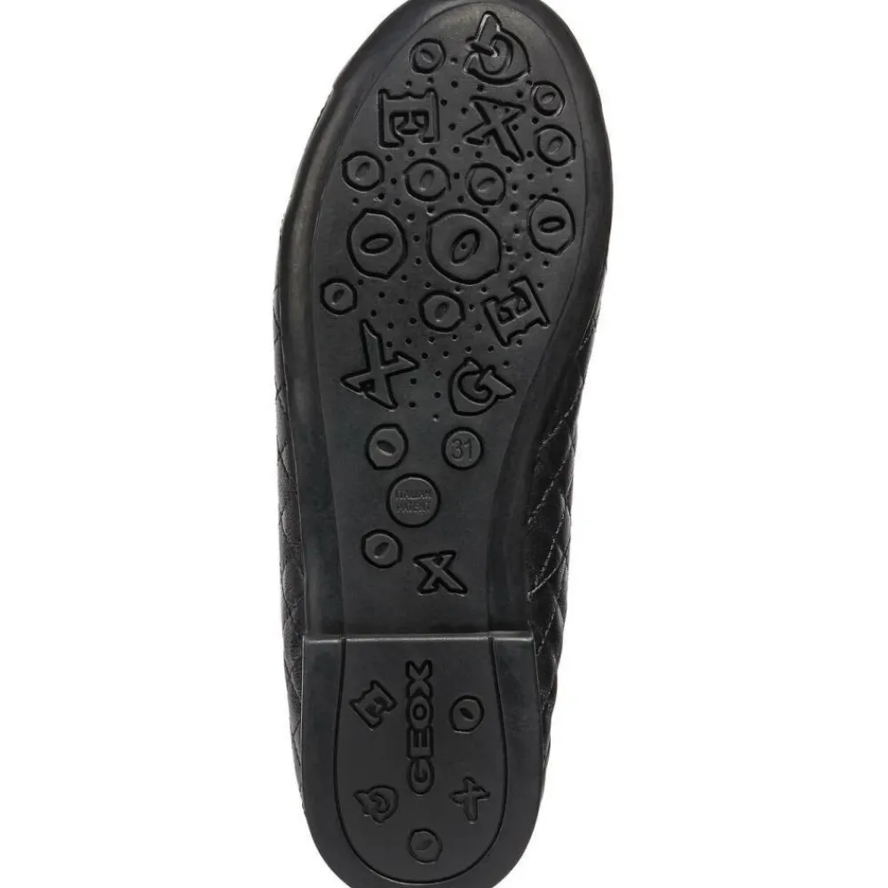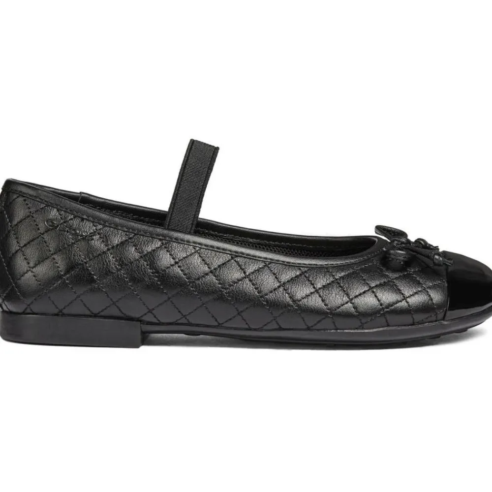 Kleiden Sie Ihr kleines Mädchen stilvoll mit diesen Geox Kids Flats. Diese lässigen und geschlossenen Ballerinas in Schwarz sind perfekt für jeden Anlass. Hergestellt aus 80% Bovineappa-Leder und 20% synthetischem Polyurethan-Obermaterial, 100% Textil-Mesh-Futter und 100% Gummisohle. Ursprünglich aus Indien stammend, sind diese Schuhe sowohl modisch als auch bequem. Produktcode: J5455B-08502 C9999.