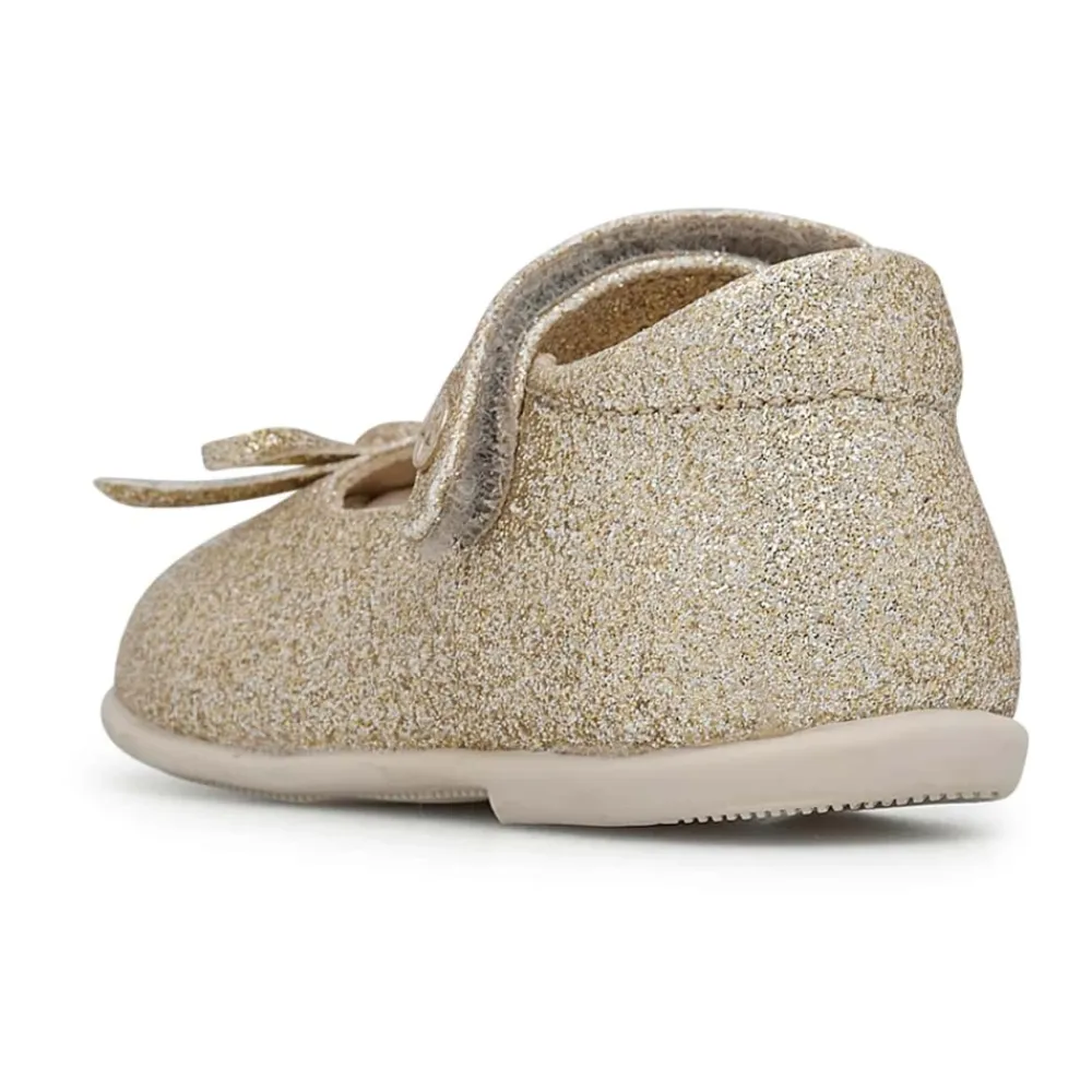 Mit den Ballerinas an den Füßen kann Ihre Kleine tanzen, rennen oder spielen und sich dabei immer wie eine Prinzessin fühlen. Diese Version aus glitzerndem Stoff ist mit einer Schleife am Ausschnitt verziert und funkelt mehr denn je. Der praktische, verstellbare Riemen und die rutschfeste Gummisohle sorgen für perfekten Halt während der Bewegung.