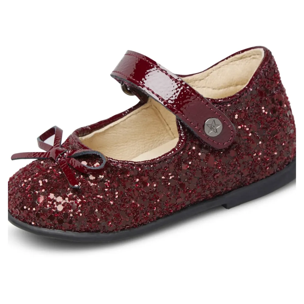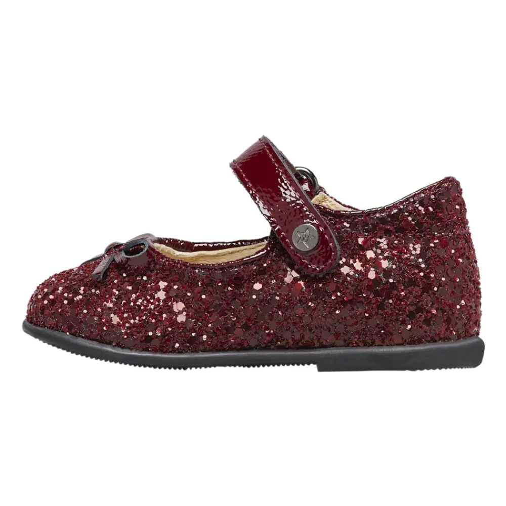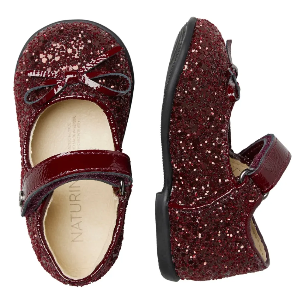 Naturino Ballet vereint Leder und Glitzerstoff zu einem funkelnden Ballerina-Schuh mit verstellbarem Riemen und rutschfester Gummisohle, der für selbstbewusste Bewegungen im Alltag und besondere Anlässe entwickelt wurde. Hauptmerkmale: Braun | Bordeaux | Leder und Glitzerstoff | Rutschfeste Gummisohle | Verstellbarer Riemen | Klettverschluss | Schleifendetail am Schuhrand | Glitzerndes Obermaterial | Material & Pflege: Leder (Futter und Innensohle) | Glitzerstoff (Obermaterial) | Gummi (Laufsohle)
