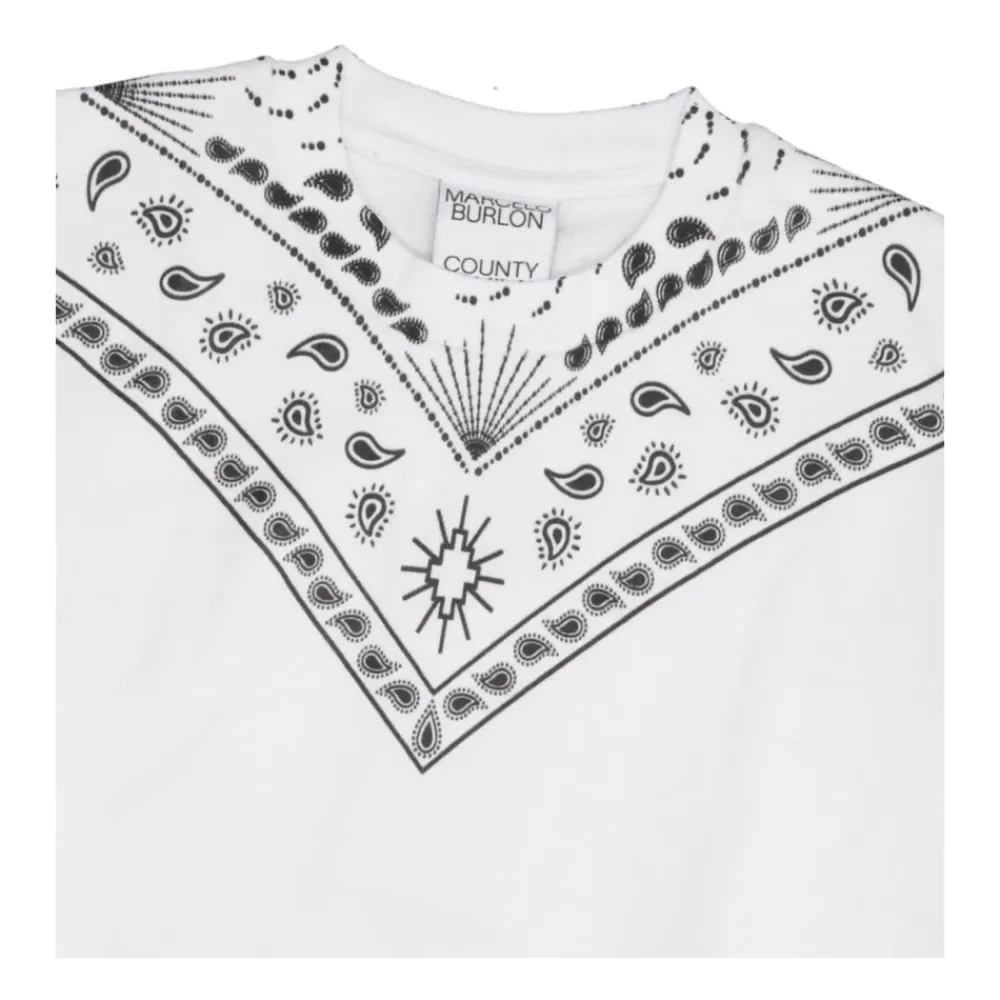 Verleihe der Garderobe deines Kindes einen Hauch von Stil mit dem Marcelo Burlon Bandana Sweatshirt, das sich durch ein auffälliges Bandana-Motiv auszeichnet und aus weicher Baumwolle für ultimativen Komfort gefertigt ist. Wichtige Merkmale: Weiß | Gauzed Cotton | Rundhalsausschnitt | Lange Ärmel mit Bündchen | Einzigartiges Bandana-Motiv mit spitzem Ende | Maße und Passform: Normale Passform | Zusammensetzung und Pflege: 100% Baumwolle | Maschinenwäsche kalt, im Trockner bei niedriger Temperatur trocknen