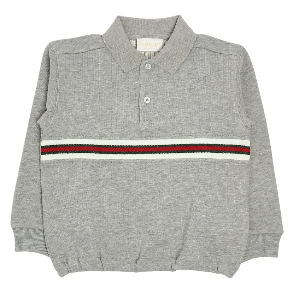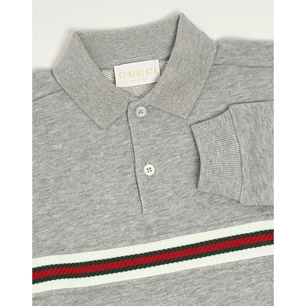 Das Gucci Baumwoll-Sweatshirt kombiniert weiche, angeraute Baumwolle mit einem archivierten Webstreifen für eine sportliche Alltagsschicht. Es verfügt über einen Polokragen und einen Knopfverschluss für einfaches Tragen und ein raffiniertes Finish. Hauptmerkmale: Hellgrau | Angerauhte Baumwolle | Knopfverschluss | Elastischer Saum | Polokragen | Lange Ärmel | Gestricktes Webdetail | Rippstrickbesatz | Maße & Passform: Reguläre Passform | Zusammensetzung & Pflege: Angerauhte Baumwolle