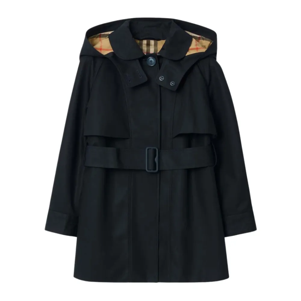 Der Burberry Baumwoll-Trenchcoat mit Kapuze vereint klassische Trenchcoat-Details mit einer abnehmbaren Kapuze und dem charakteristischen Check-Futter des Labels. Er ist als leichte, wetterfeste Außenschicht für den täglichen Gebrauch konzipiert. Hauptmerkmale: Sturmwolkenblau | Baumwolle | Abnehmbare Kapuze | Verdeckter Knopfverschluss | Seitliche Einschubtaschen | Verstellbarer Gürtel mit Schnalle | Einreihiger Knopfverschluss | Kellerfaltenmanschetten | Burberry Check unter Kragen und Futter | Zusammensetzung & Pflege: Obermaterial: 100 % Baumwolle | Unterkragen: 100 % Baumwolle | Futter: 100 % Baumwolle | Ärmelfutter: 100 % Polyester | Spezialreinigung