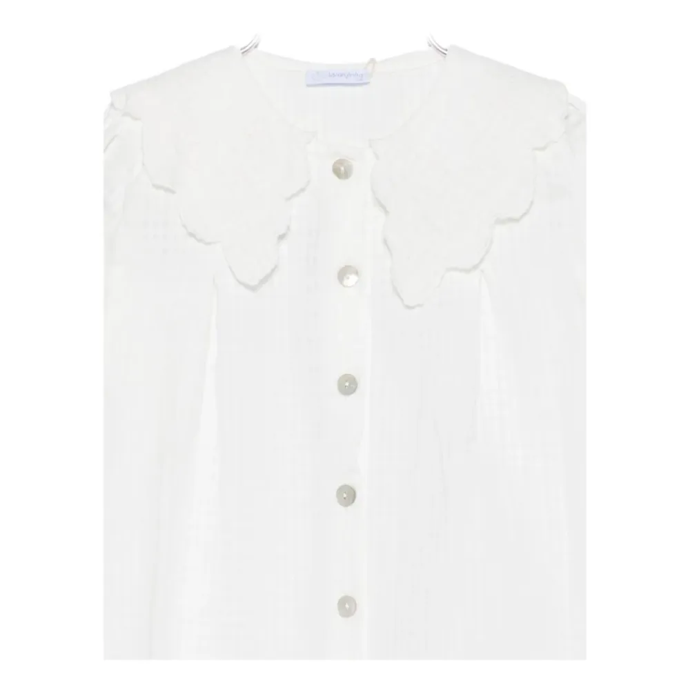 Das Laranjinha Baumwollshirt mit gewelltem Kragen kombiniert atmungsaktive Baumwolle mit einem zarten, gewellten Kragen für einen gepflegten, eleganten Look, der sich für den Alltag eignet. Hauptmerkmale: Weiß | Baumwolle | Gewellter Kragen | Zusammensetzung & Pflege: Baumwolle