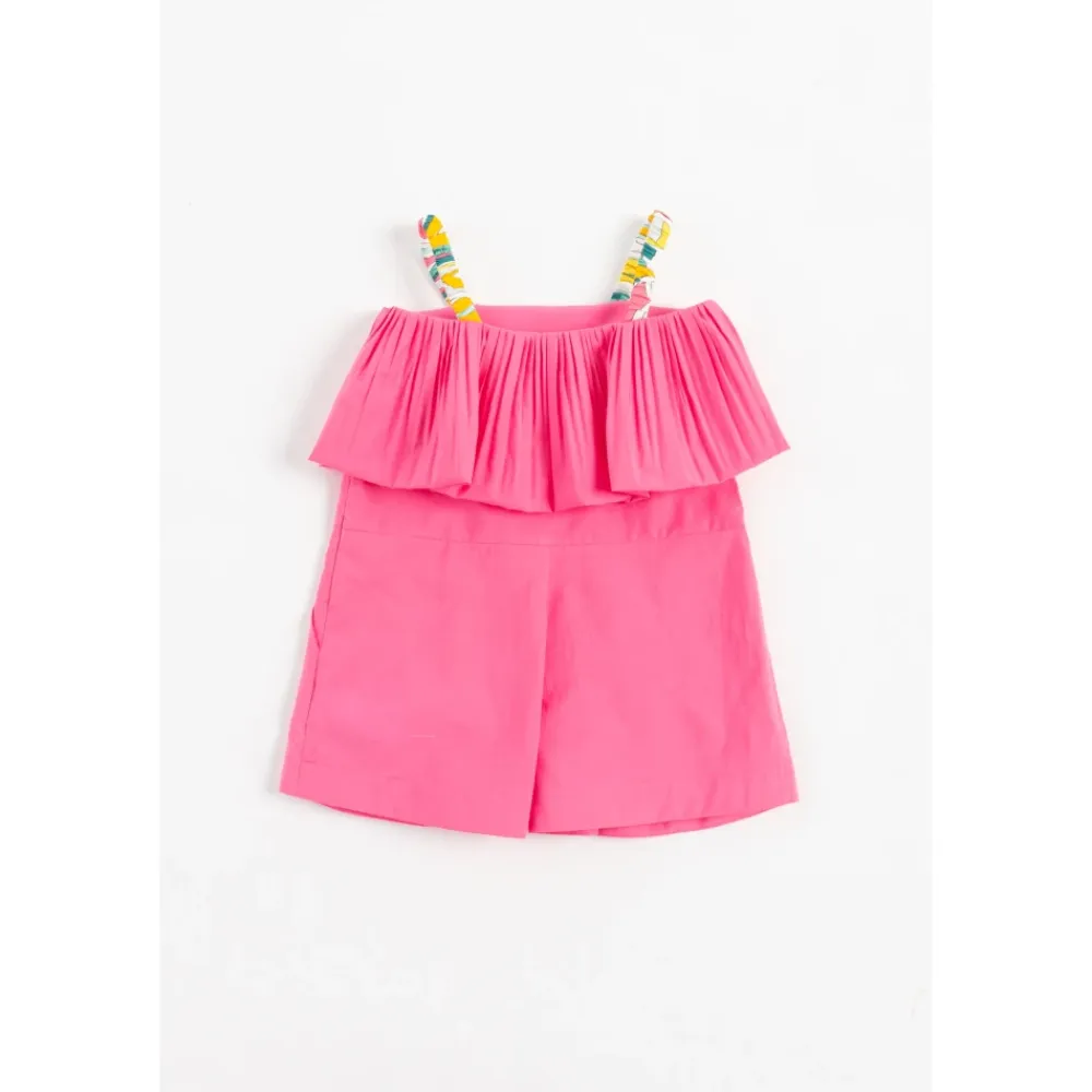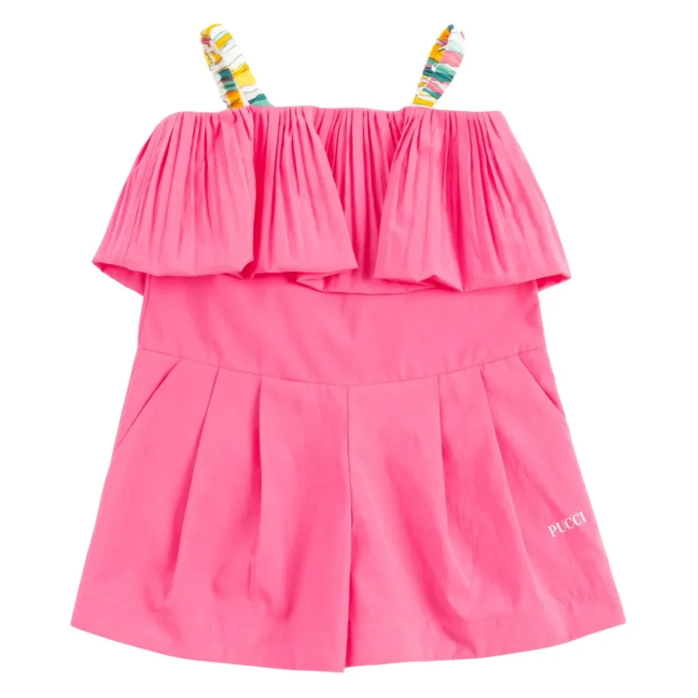 Entdecken Sie den lebhaften bedruckten Jumpsuit von Pucci mit einem auffälligen Logo-Print und einem einzigartigen eckigen Ausschnitt. Perfekt, um Ihrer Garderobe einen Farbtupfer zu verleihen. Wichtige Merkmale: Fuchsia | Pink | Eckiger Ausschnitt | Ärmellos | Gerader Saum | Logo-Print auf der Vorderseite | Grafische Prints auf den Ärmeln | Maße und Passform: Kurzes und weites Design |