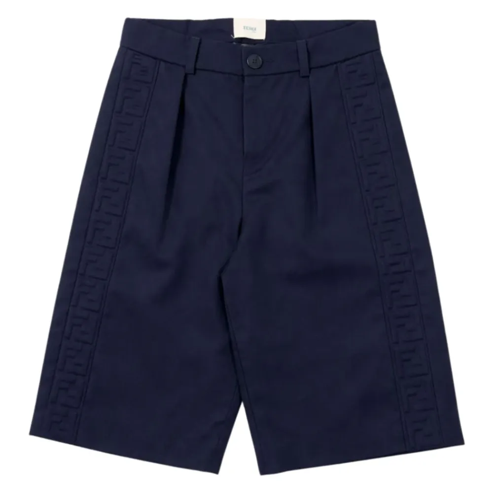 Fendi Bermuda-Shorts präsentieren eine maßgeschneiderte Bermuda-Silhouette mit geprägten FF-Logo-Details und praktischem Verschluss. Hergestellt in Italien, kombinieren sie strukturierte Schurwolle mit einem Viskosefutter für ein raffiniertes Alltagsoutfit. Hauptmerkmale: Blau | Schurwolle | Knopf- und Reißverschluss | Interne elastische Bündchen | Gürtelschlaufen | Elastischer Bund hinten | Drei Taschen | Bermuda-Silhouette | Normale Bundhöhe | FF-Logo auf beiden Seiten geprägt | Maße und Passform: Normale Passform | Materialzusammensetzung und Pflege: 100 % Schurwolle | Futter: 100 % Viskose