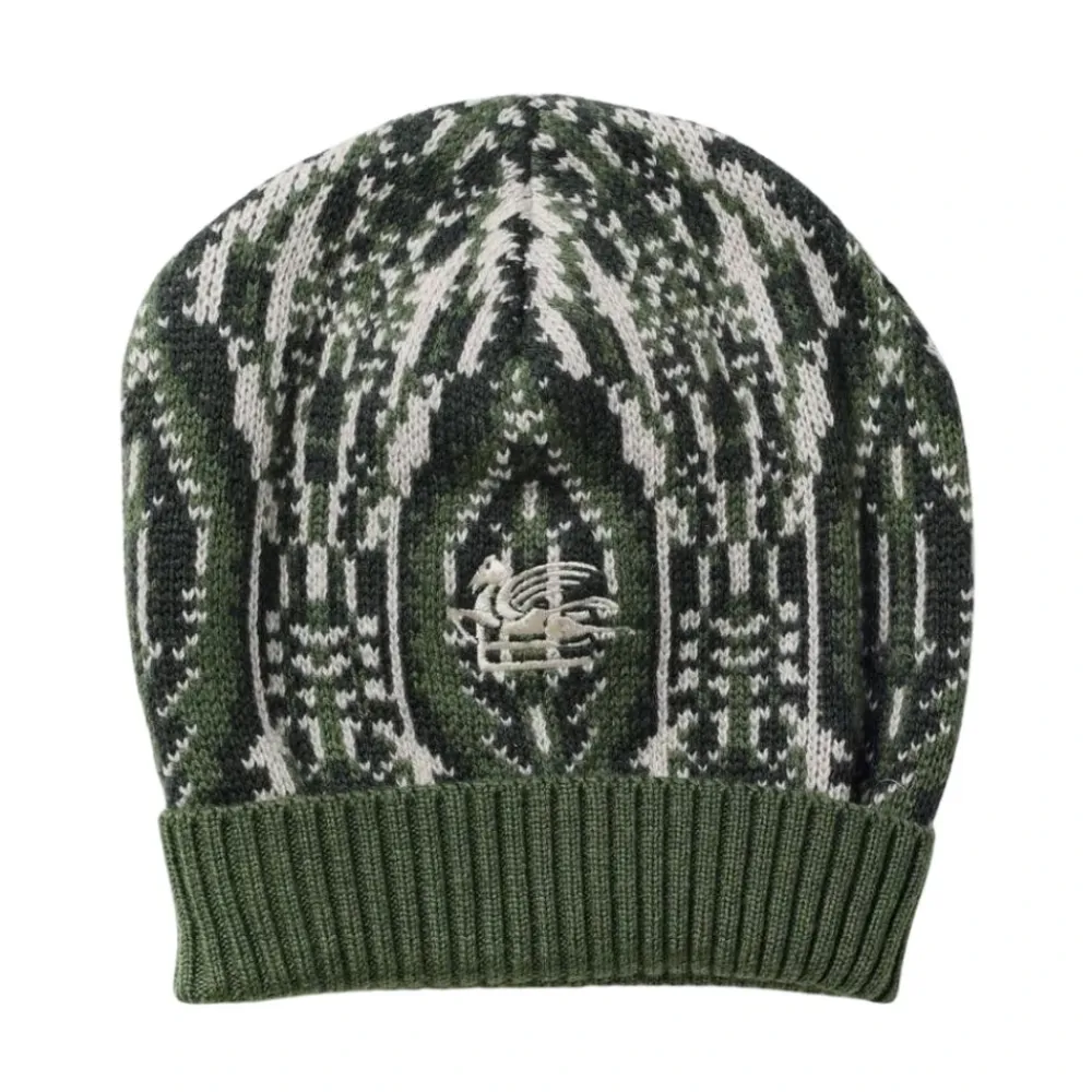 Fügen Sie mit dieser gestrickten Kopfbedeckung von Etro jedem legeren Outfit eine stilvolle Note hinzu. Hergestellt aus 100% Wolle, bietet sie ein einzigartiges Muster und eine bequeme Passform.