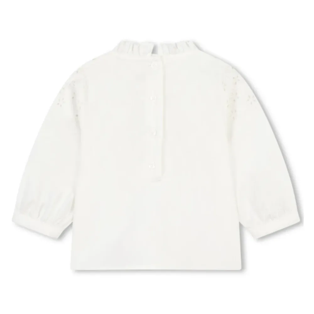 Entdecken Sie die Eleganz des bestickten weißen Hemdes, einer Chloé-Kreation, die zeitlosen Stil mit modernem Design verbindet. Perfekt für jeden Anlass, diese Bluse zeichnet sich durch aufwendige Stickereien und eine raffinierte Silhouette aus. Wichtige Merkmale: Weiß | 100% Baumwolle | Rundhalsausschnitt | Gerüschter Kragen | Lange Ärmel | Druckknopfverschluss hinten | Gerader Saum | Zusammensetzung und Pflege: 100% Baumwolle | Maschinenwäsche kalt, Trocknergeeignet bei niedriger Temperatur.