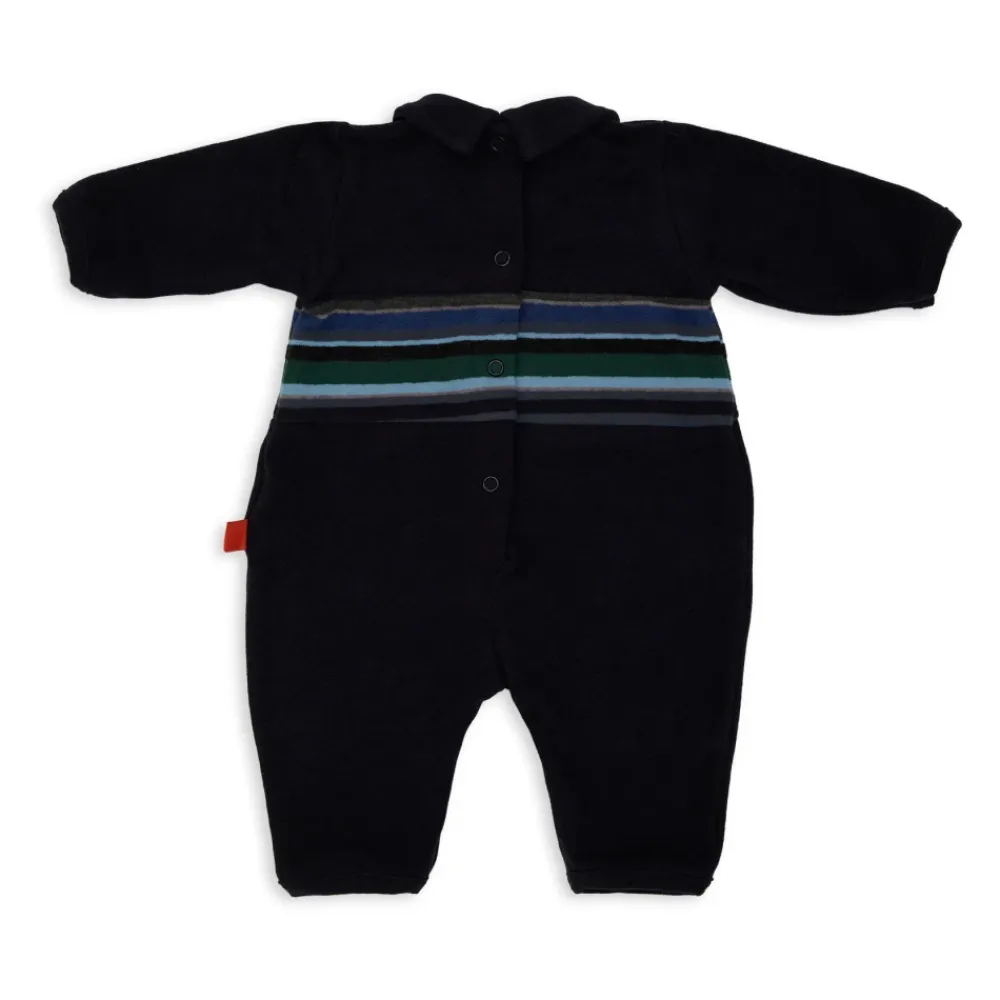 Blauer Fleece-Strampler mit gestreiftem Band>GALLO Outlet