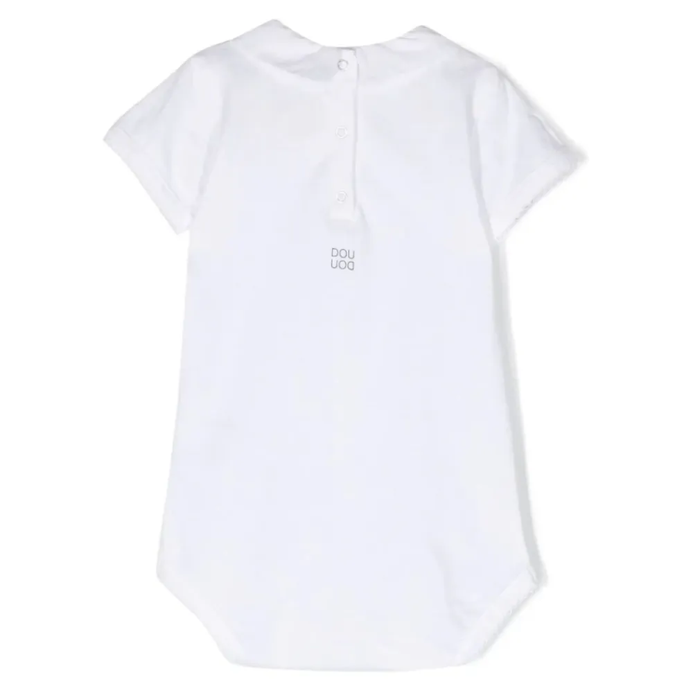 Douuod Body ist ein Baumwoll-Body mit kurzen Ärmeln, einem klassischen Kragen und Druckknopfverschluss. Er eignet sich als praktische Alltagsschicht mit einer schlichten, einfachen Silhouette. Hauptmerkmale: Weiß | Baumwolle | Druckknopfverschluss | Klassischer Kragen | Kurze Ärmel | Zusammensetzung und Pflege: Baumwolle