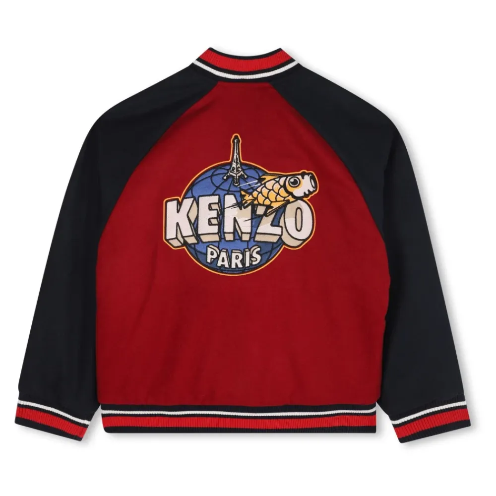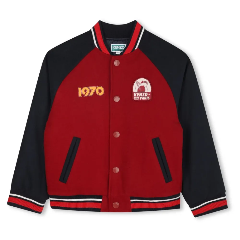 Kenzo Bomberjacke mit Colorblock-Design und Logo-Details, gefertigt als leichte Außenschicht für den Alltag. Hauptmerkmale: Multicolor | Bordeaux | Wolle | Baumwolle | Druckknopfverschluss | Gerippter Saum und Bündchen | Logo-Applikation | Colorblock-Design | Kontrastierende rote und marineblaue Einsätze | Grafikdruck auf der Rückseite | Zusammensetzung & Pflege: 50% Wolle | 50% Baumwolle | Nicht waschen. Nicht chemisch reinigen.