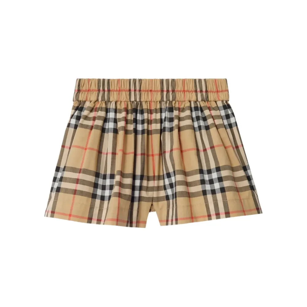 Die Burberry Check Baumwollshorts zeigen das typische beige Karomuster der Marke und einen gerafften, elastischen Bund für einfaches Tragen. Die weite Silhouette und die seitlichen Eingrifftaschen machen sie praktisch für alltägliche, warme Wetteroutfits. Hauptmerkmale: Multicolor | Neutrals | Schwarz | Baumwolle | Elastischer Bund | Seitliche Eingrifftaschen | Beiges Karomuster | Geraffter Bund | Weites Bein | Abmessungen & Passform: Weites Bein | Geraffter Bund mit elastischem Bund | Materialzusammensetzung & Pflege: 100% Baumwolle | Maschinenwäsche