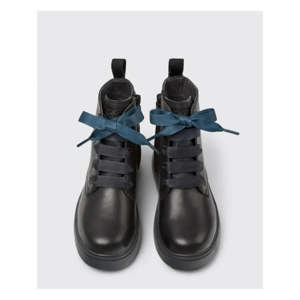 Entdecken Sie die stilvollen Camper Schuhe für Kinder in Schwarz, die für Komfort und Stil entworfen wurden. Hergestellt aus einem Leder-Obermaterial und einer Gummisohle bieten diese Schuhe Langlebigkeit und ein elegantes Aussehen für jeden Anlass.